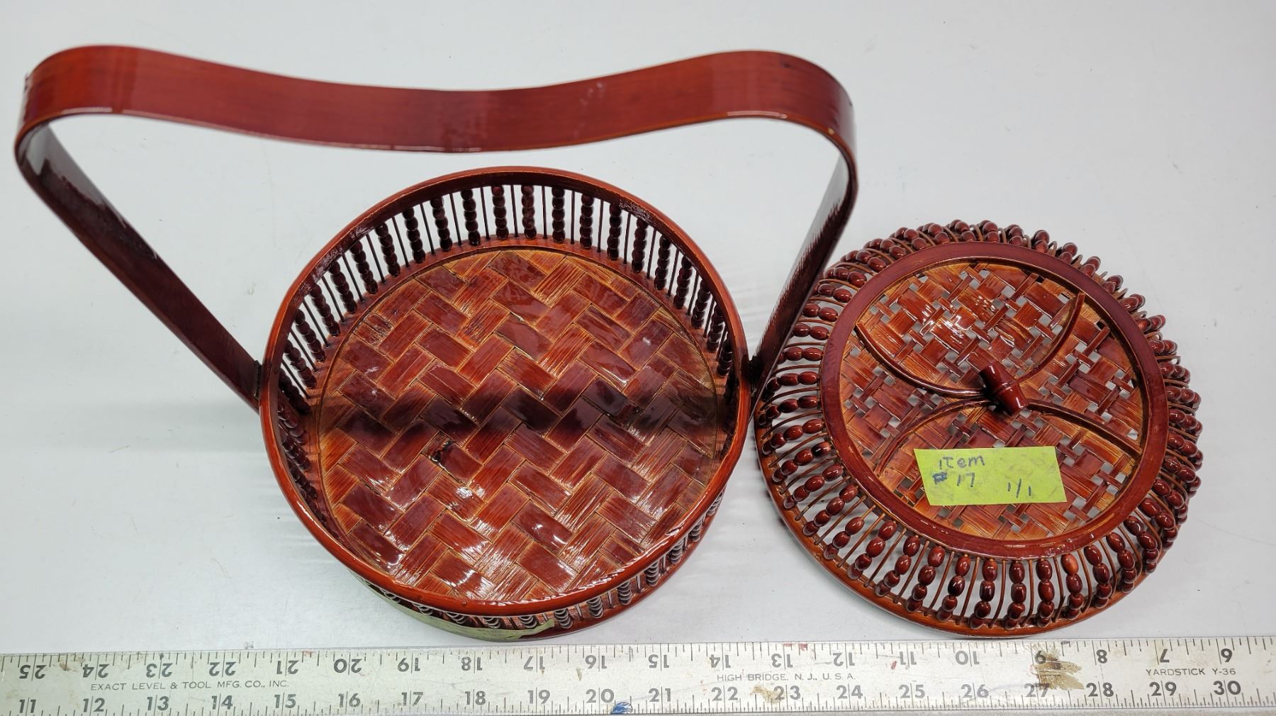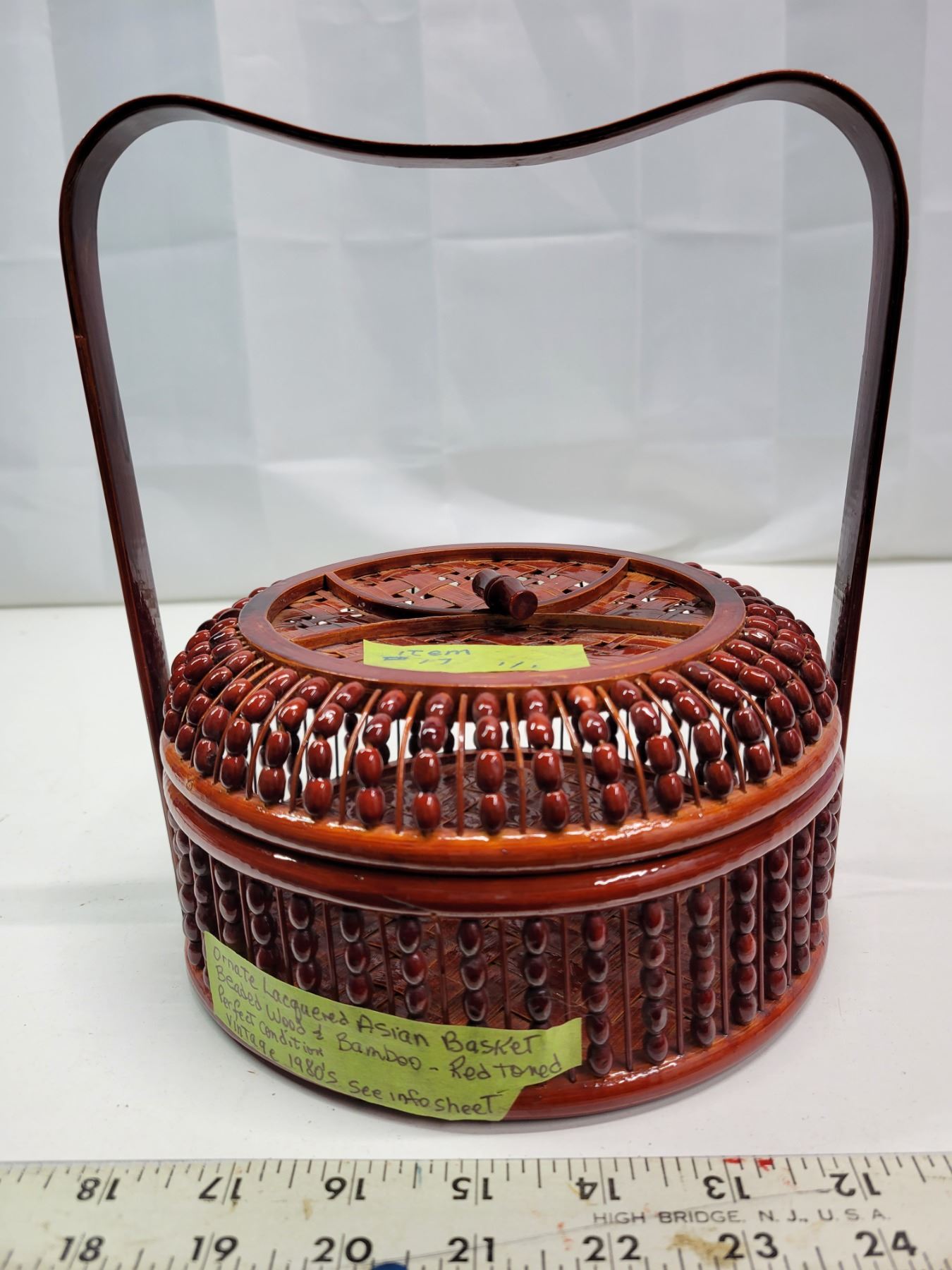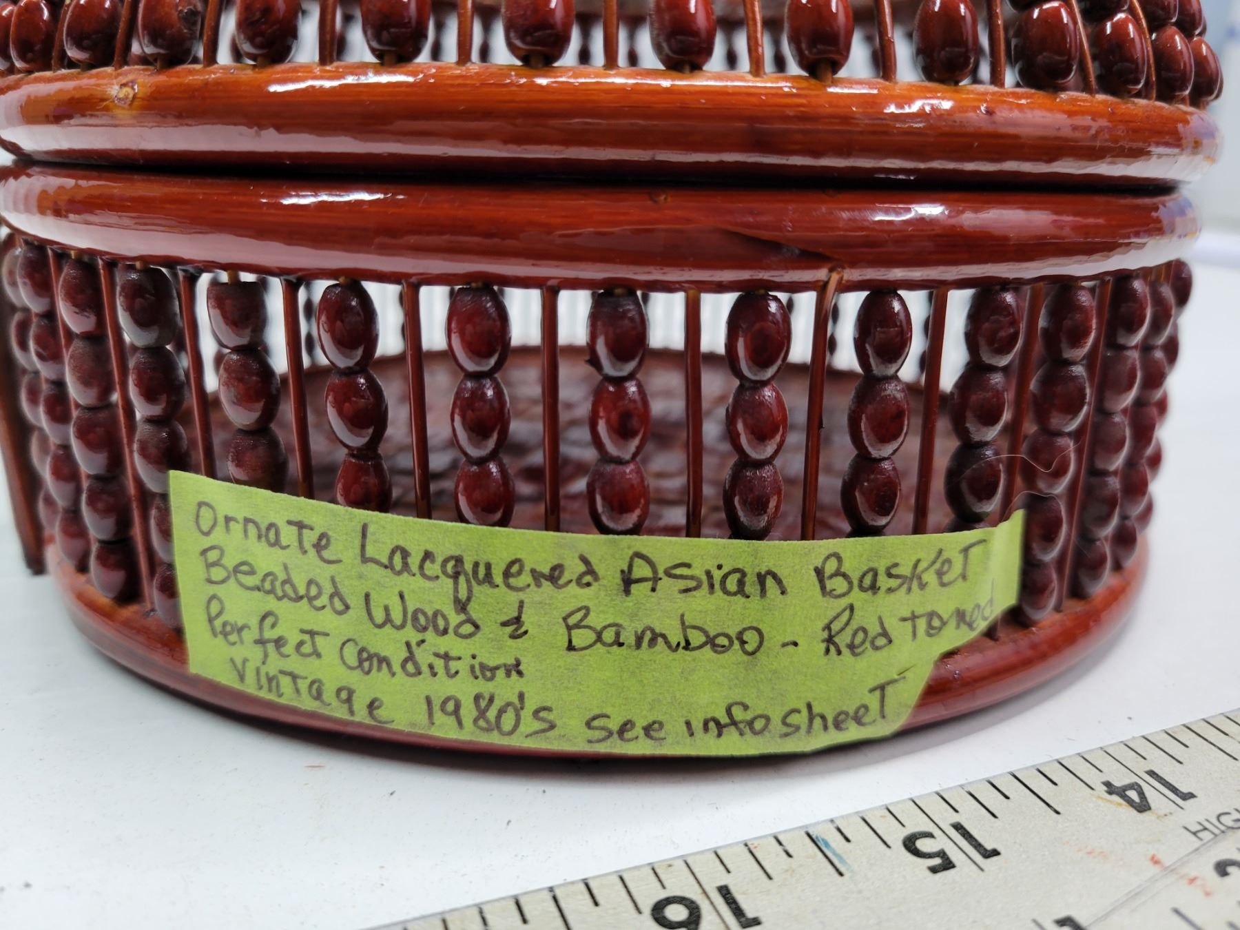 Beaded Wooden-Bamboo Lacquered Cricket Basket Asian - 1980's