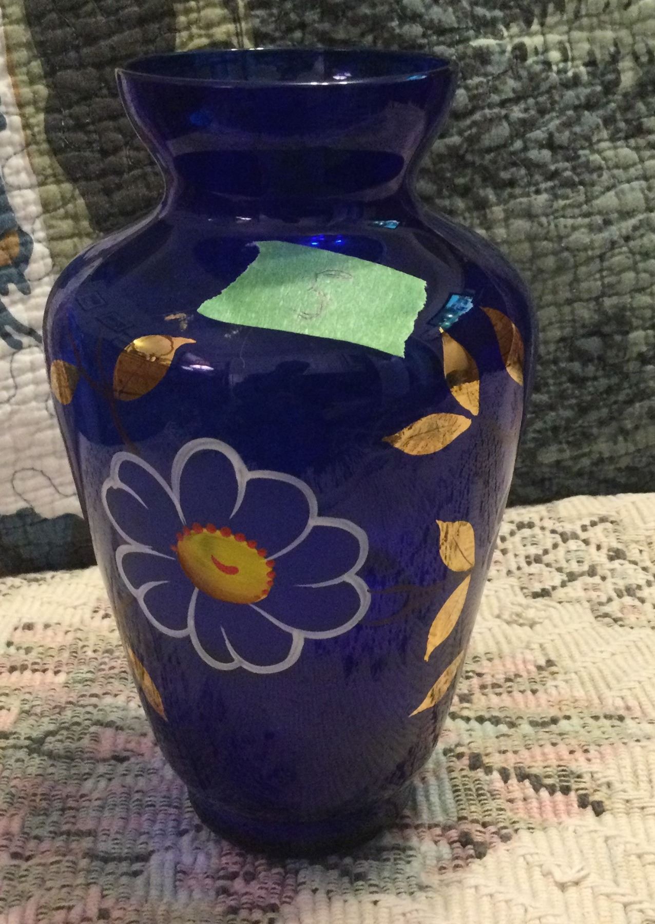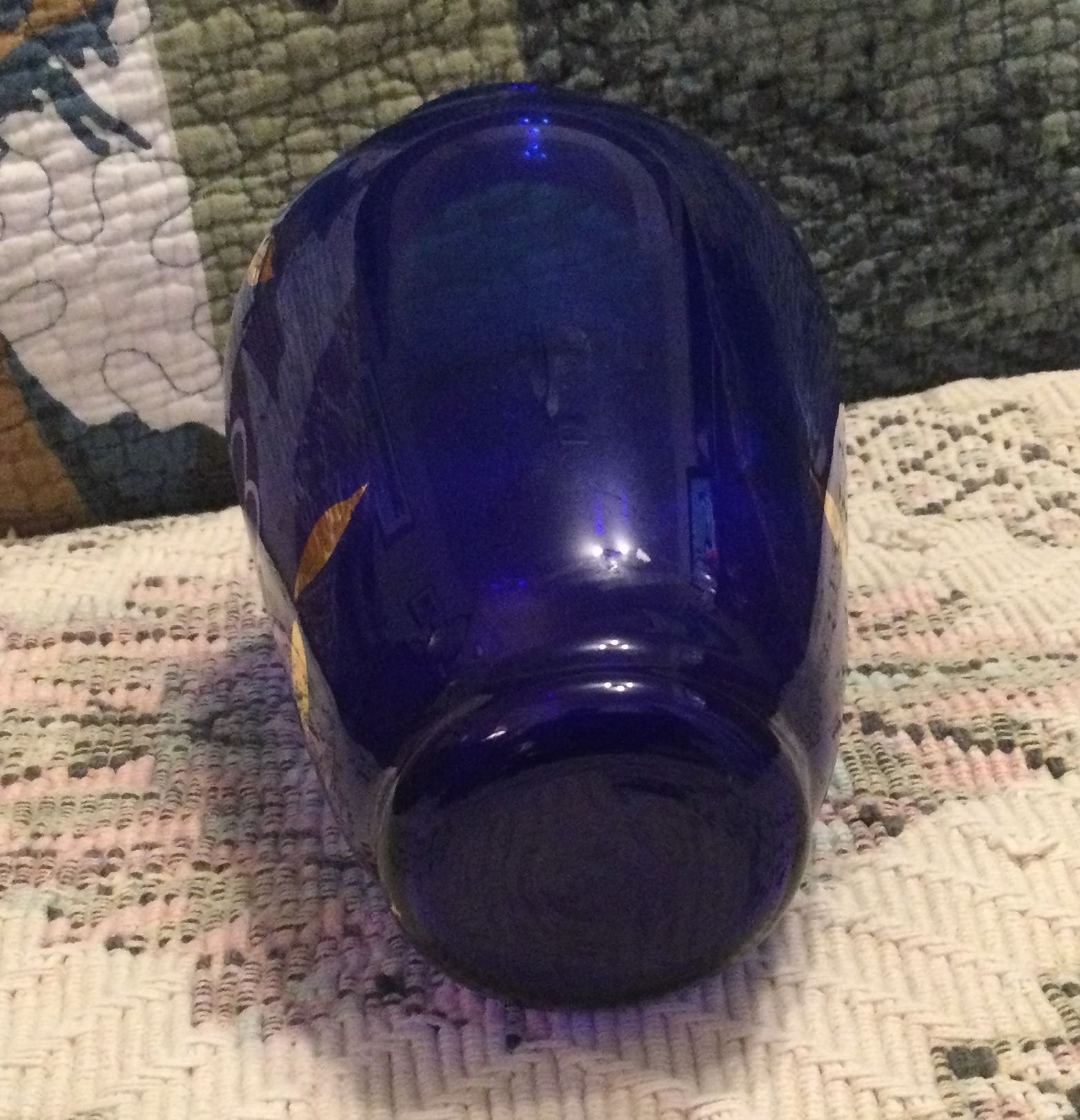 Beautiful 8" Tall hand painted Cobalt Blues and Gold vase