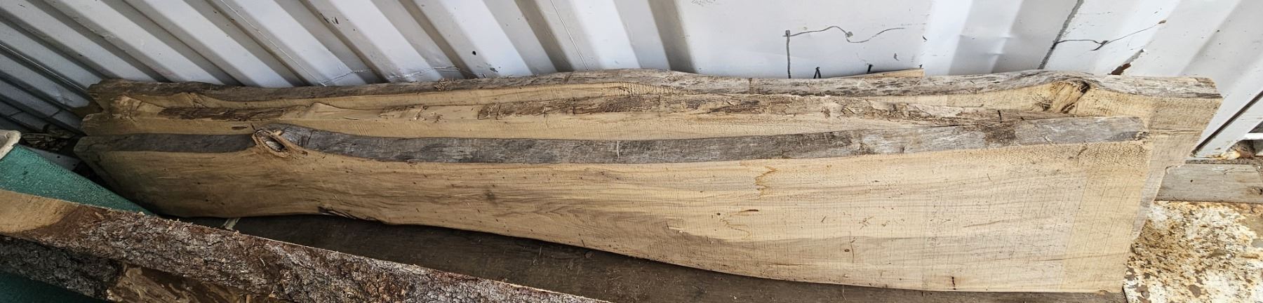 Beautiful Live Edge Spalted Black Poplar Slab 109.75"L x 13"W x 2" Thick; Pictures can't do justice to the beautiful grain and colours; Great for rustic shelves, benches or coffee tables.