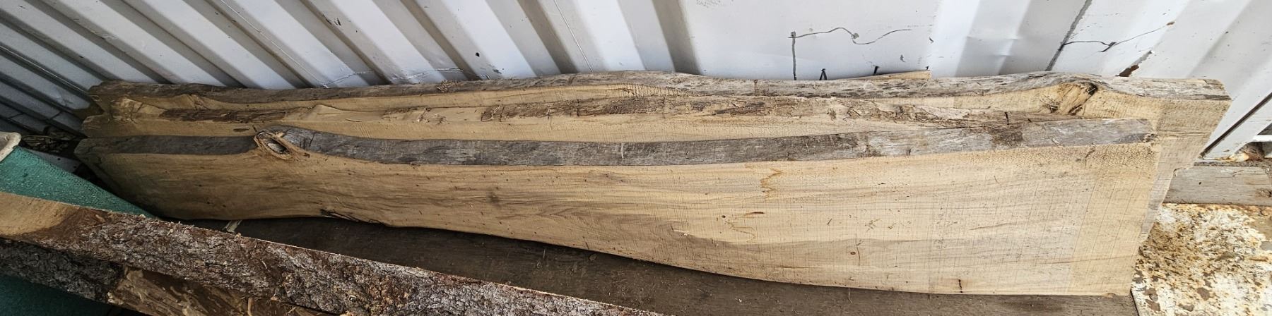 Beautiful Live Edge Spalted Black Poplar Slab 110"L x 14"W x 1.75" Thick; Pictures can't do justice to the beautiful grain and colours; Great for rustic shelves, benches or coffee tables.