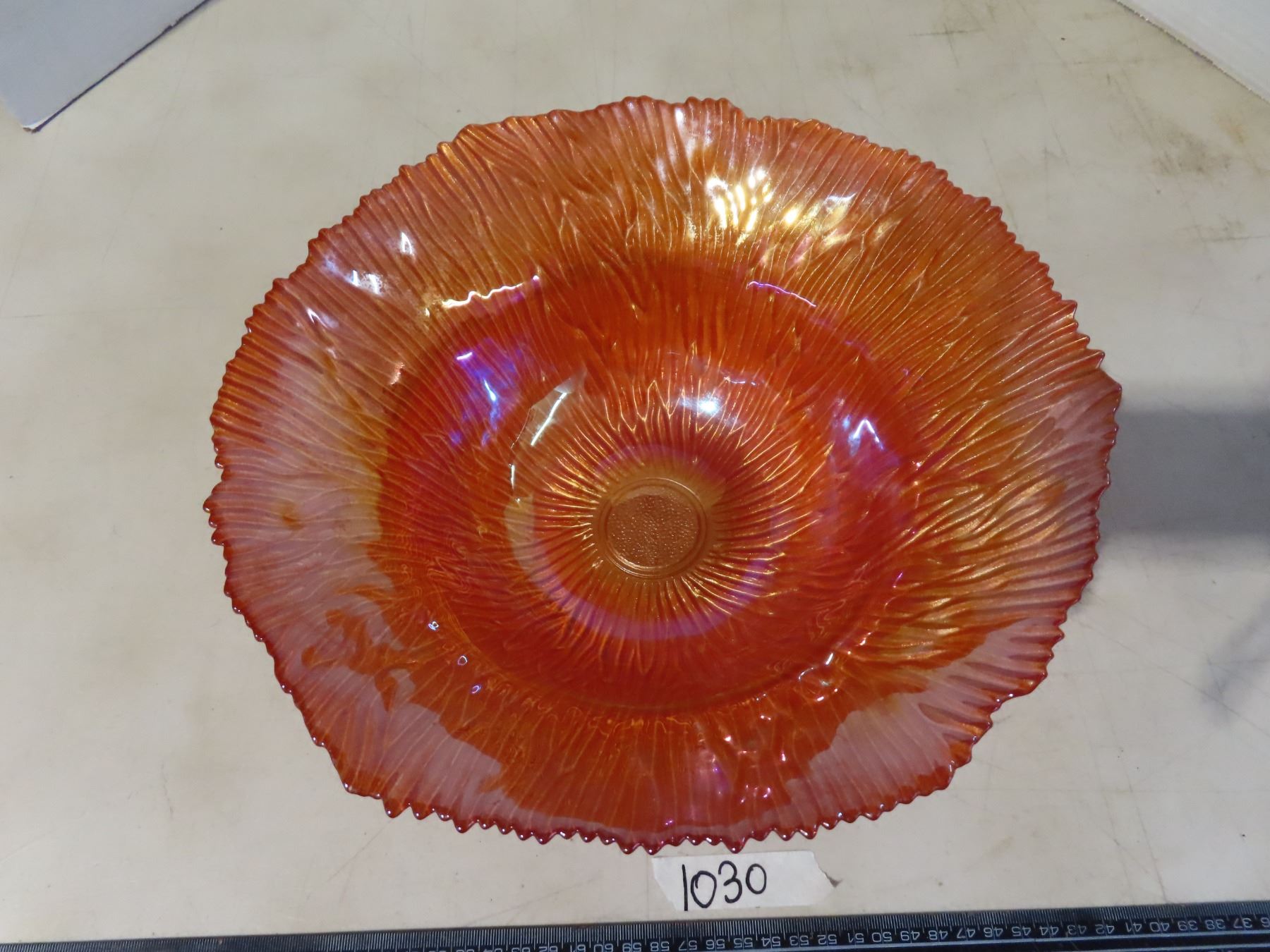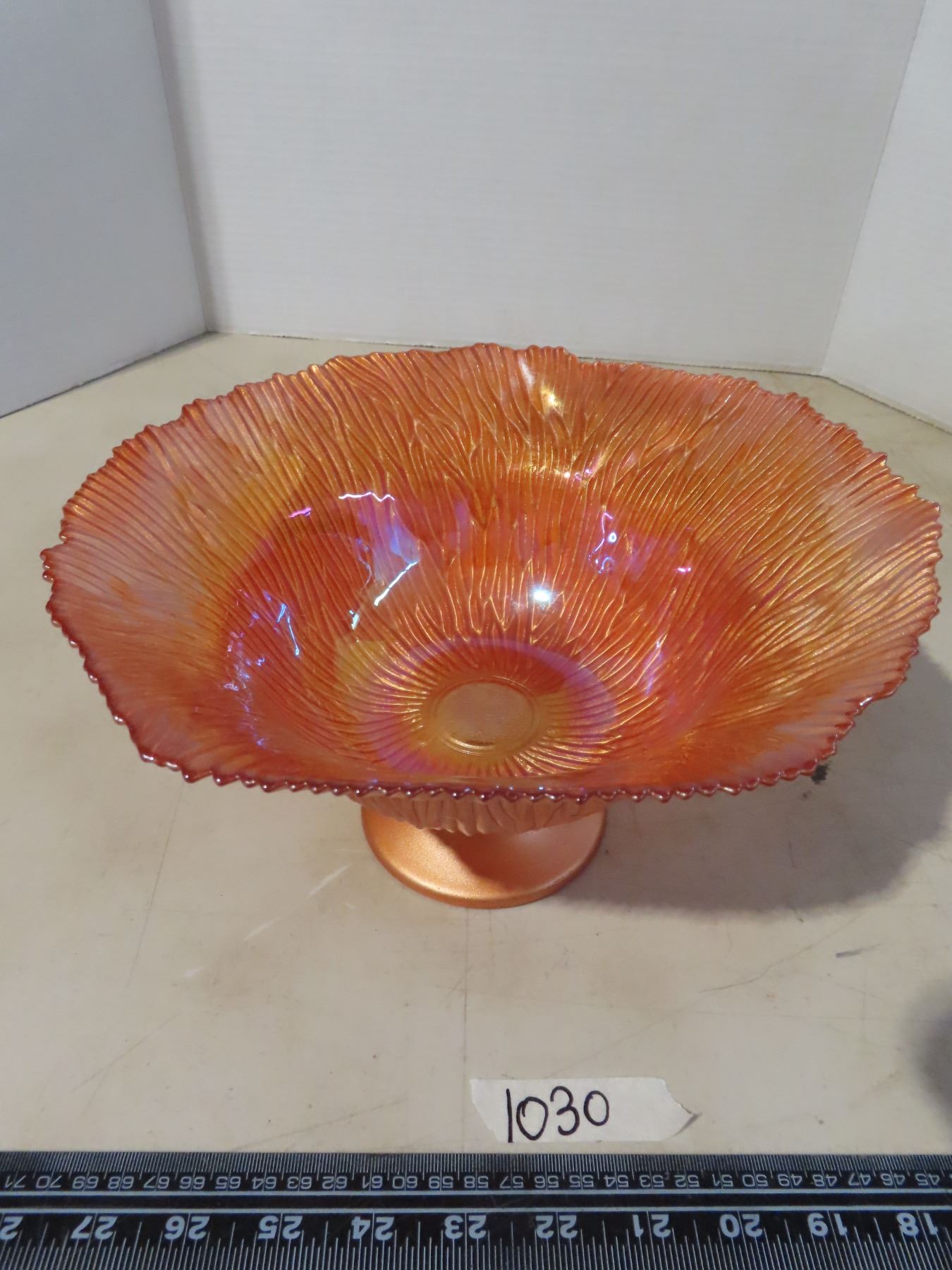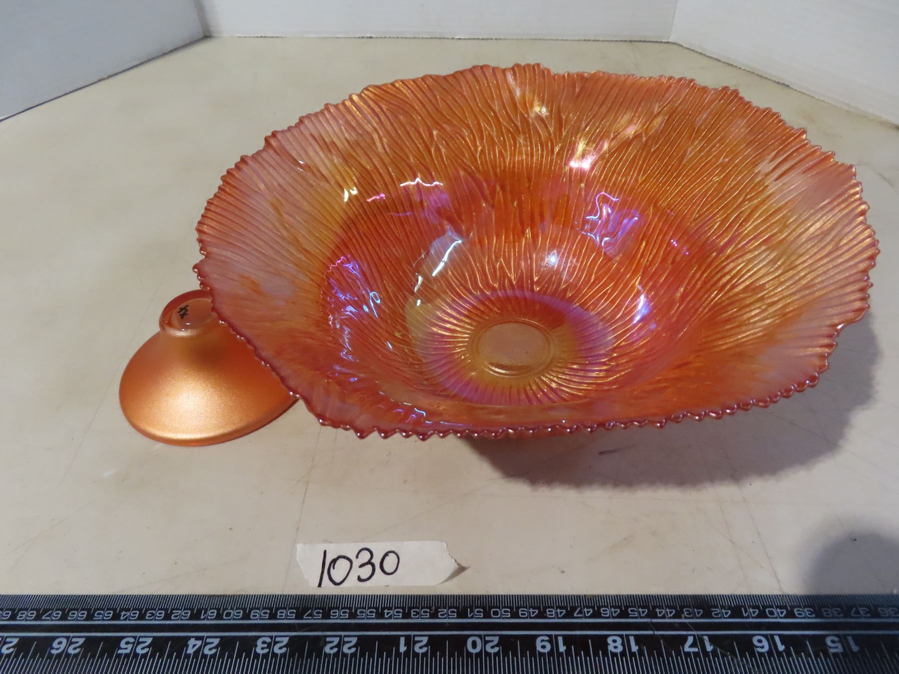 Beautiful and unique orange iridescent ripple glass. Pedestal bowl -as is