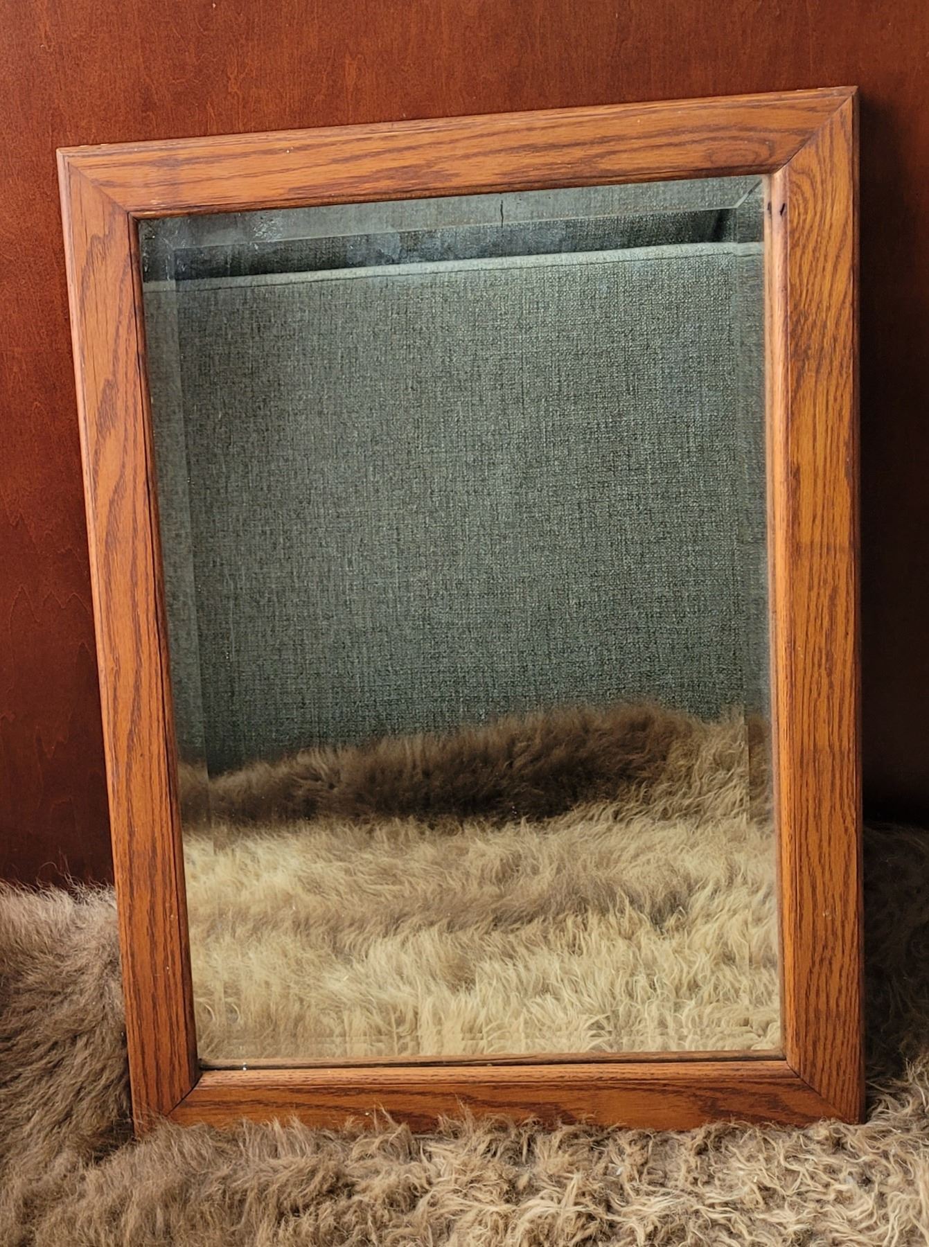 Beautifully refinished bevelled glass mirror with hardwood frame - 19 1/2" x 27 1/4"