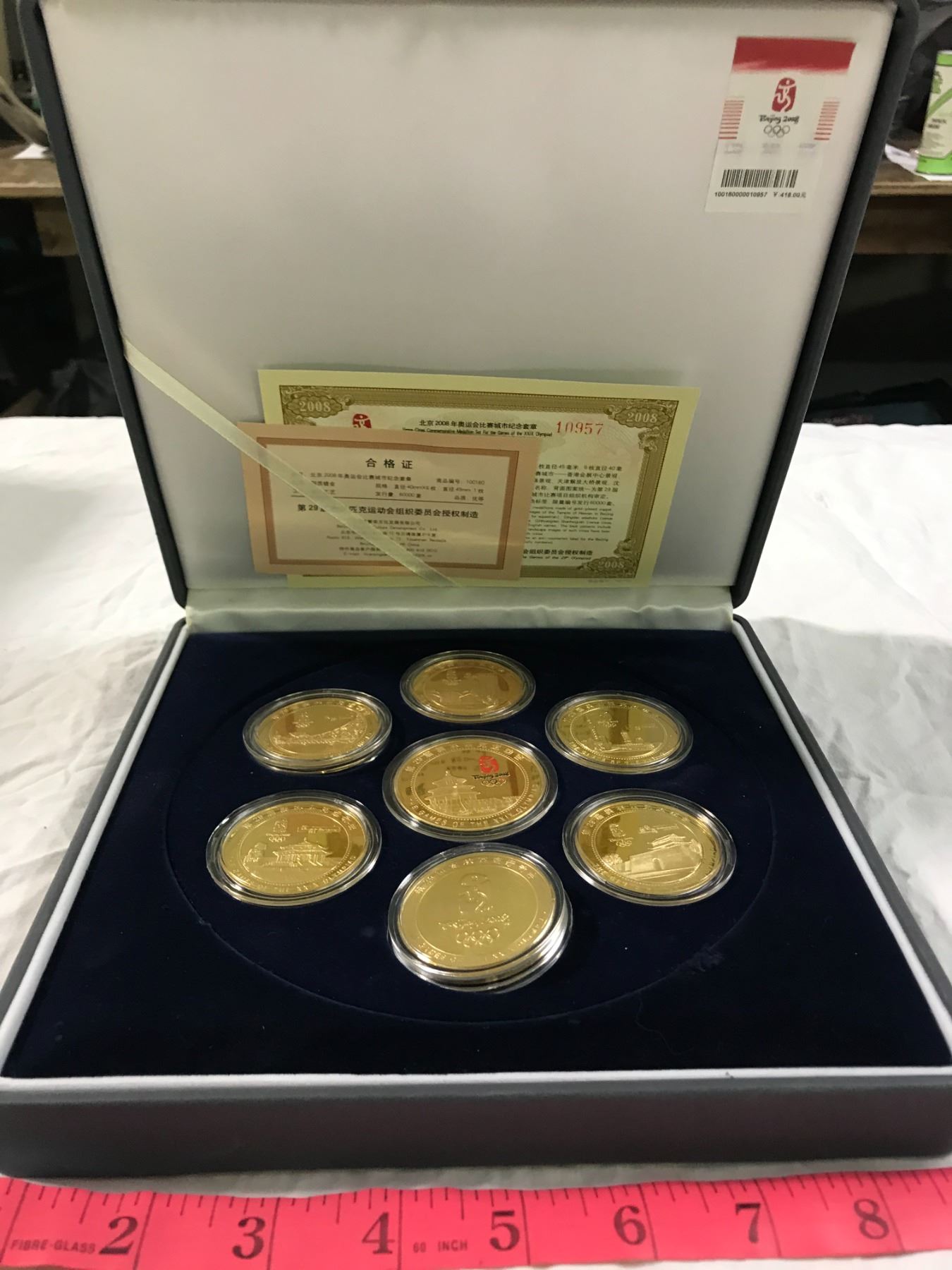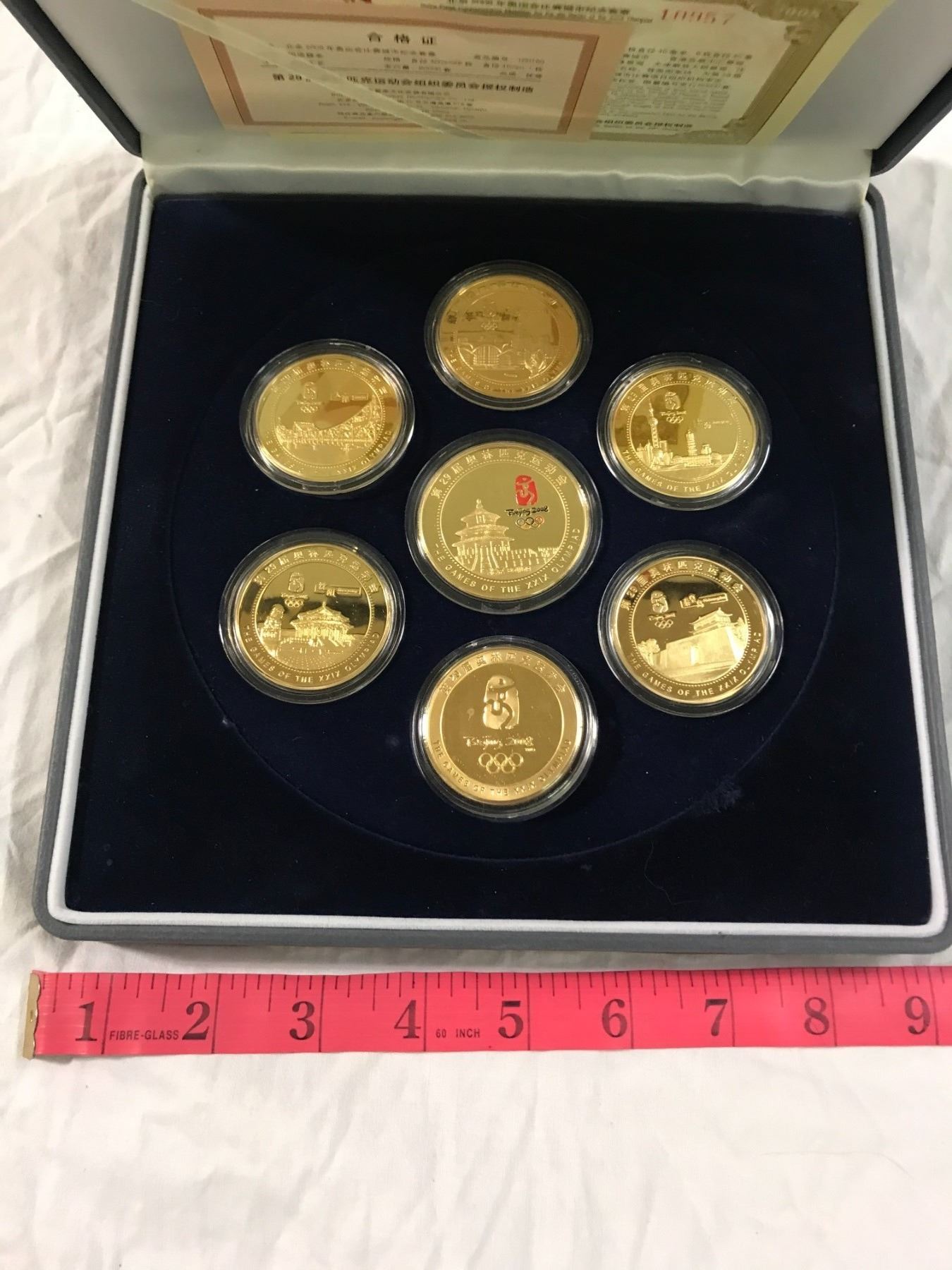 Beijing 2008 Olympics Coin Set (7 Coins, Chinese Papers, In Blue Leather Case