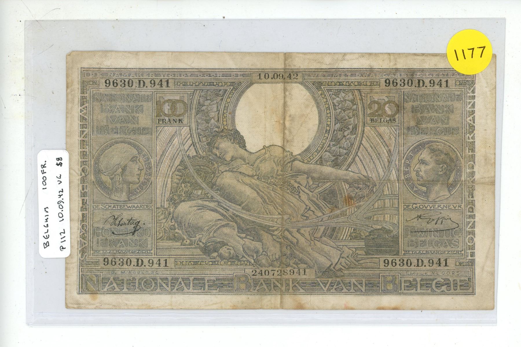 Belgium.1942 20 Francs. Issued during the German occupation of Belgium. VG.