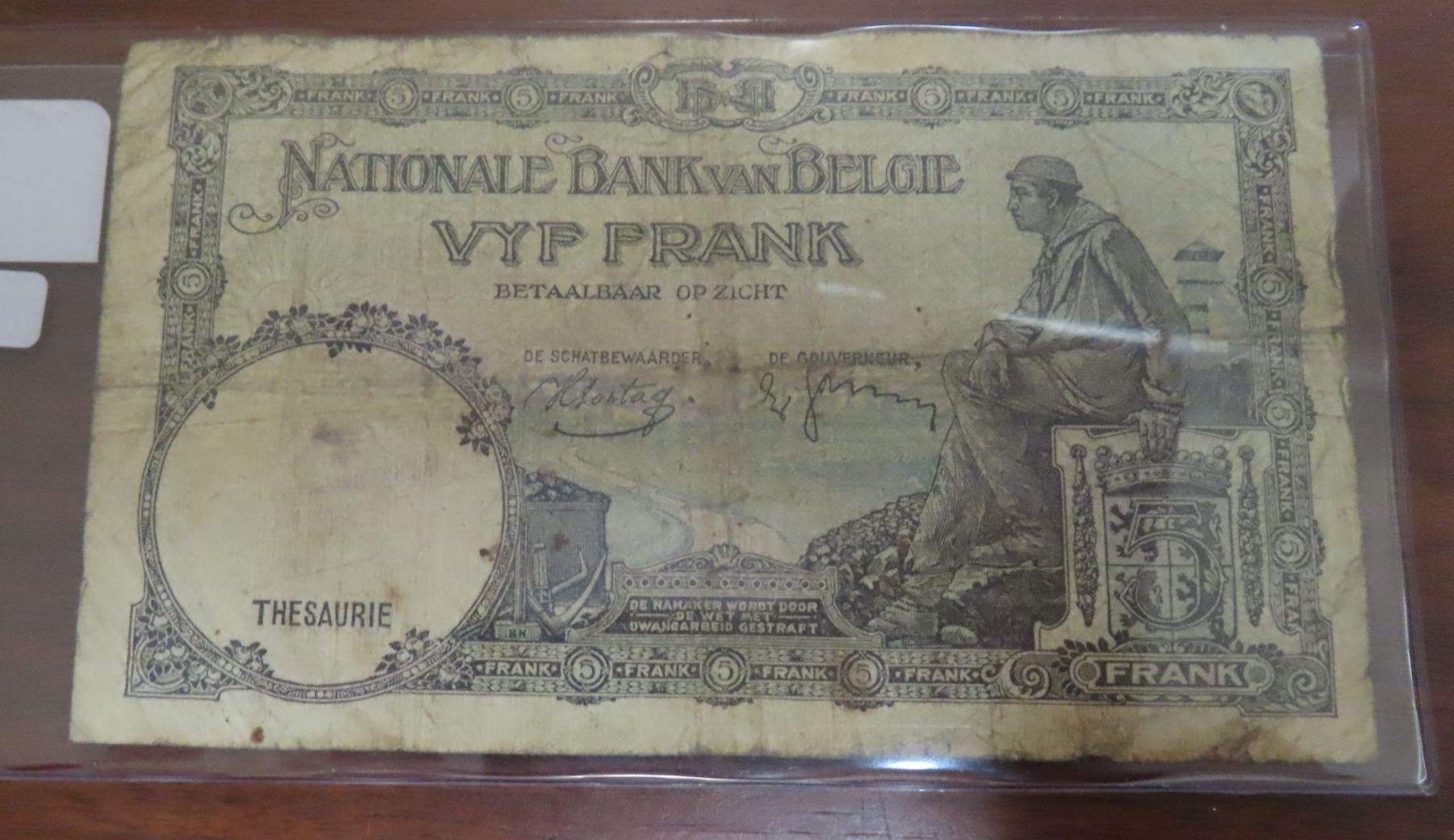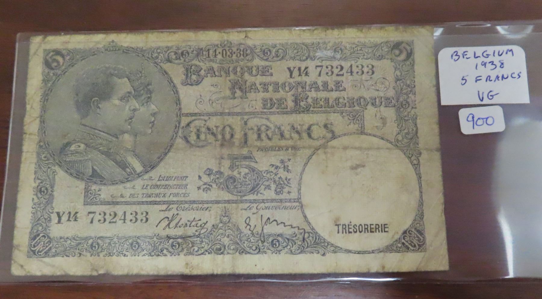 Belgium. National Bank of Belgium.1938 5 Francs. VG.