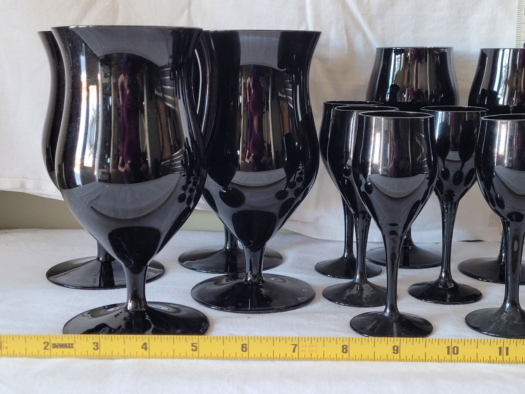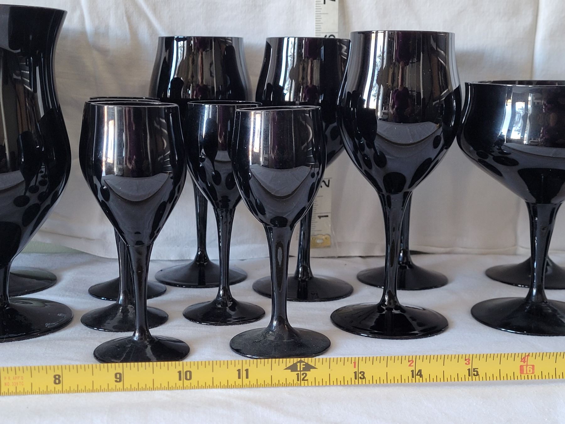Belkraft, German black crystal drink ware. “Midnight Lace” Beautiful sound.