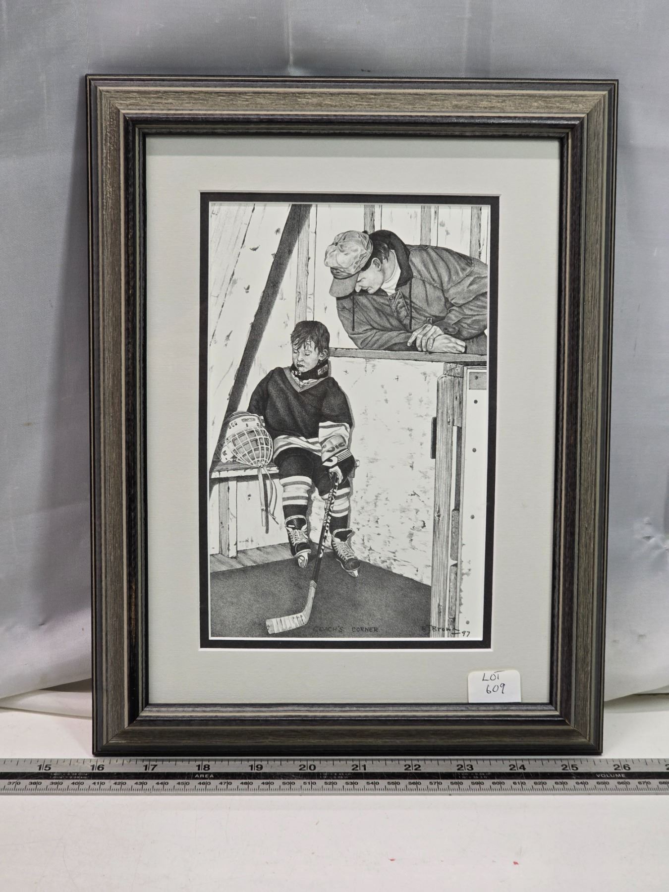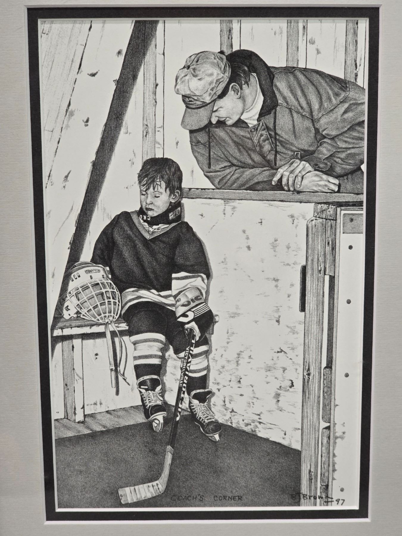 Bernie Brown framed print - "Coaches Corner" - 10x12"