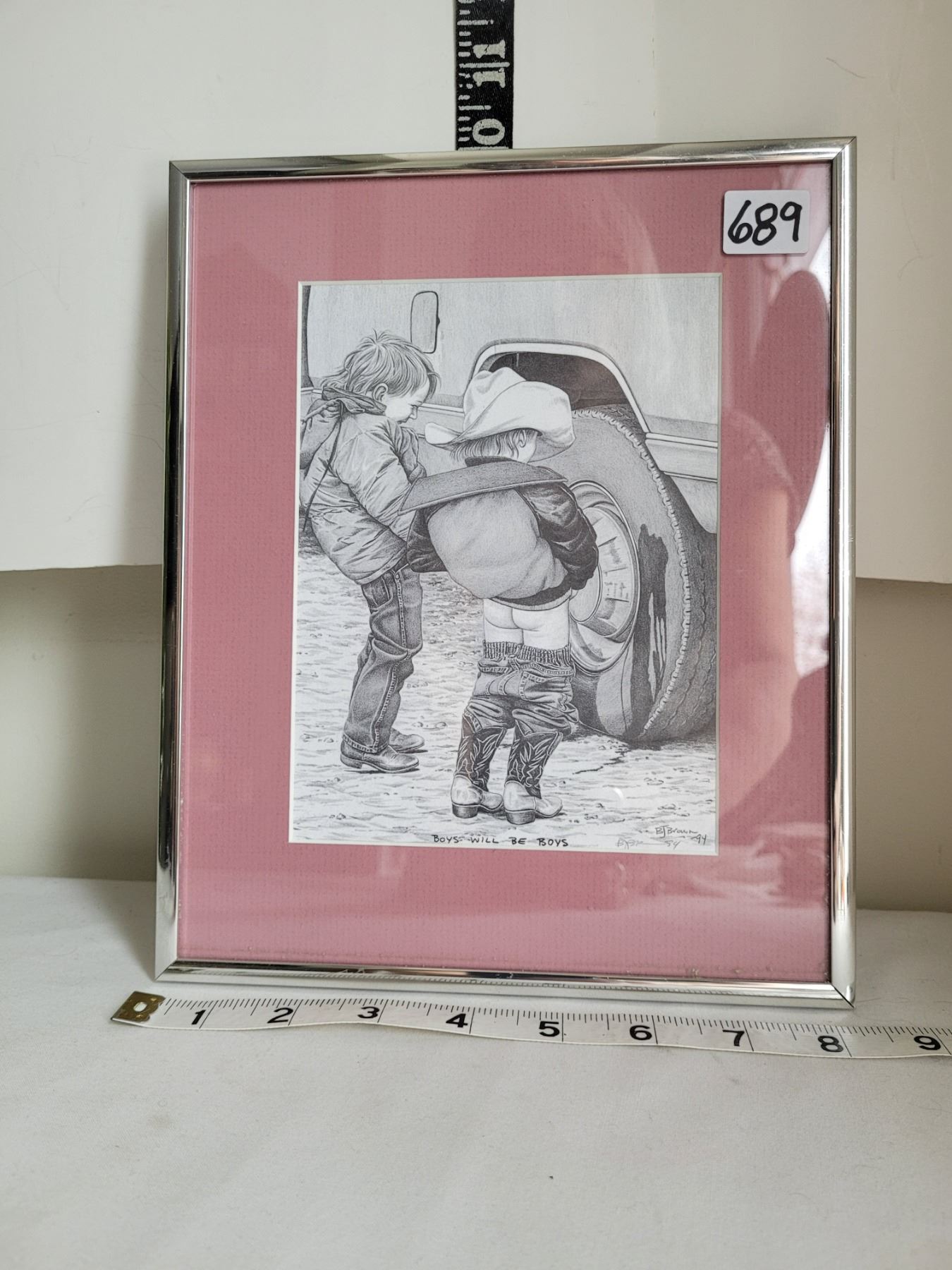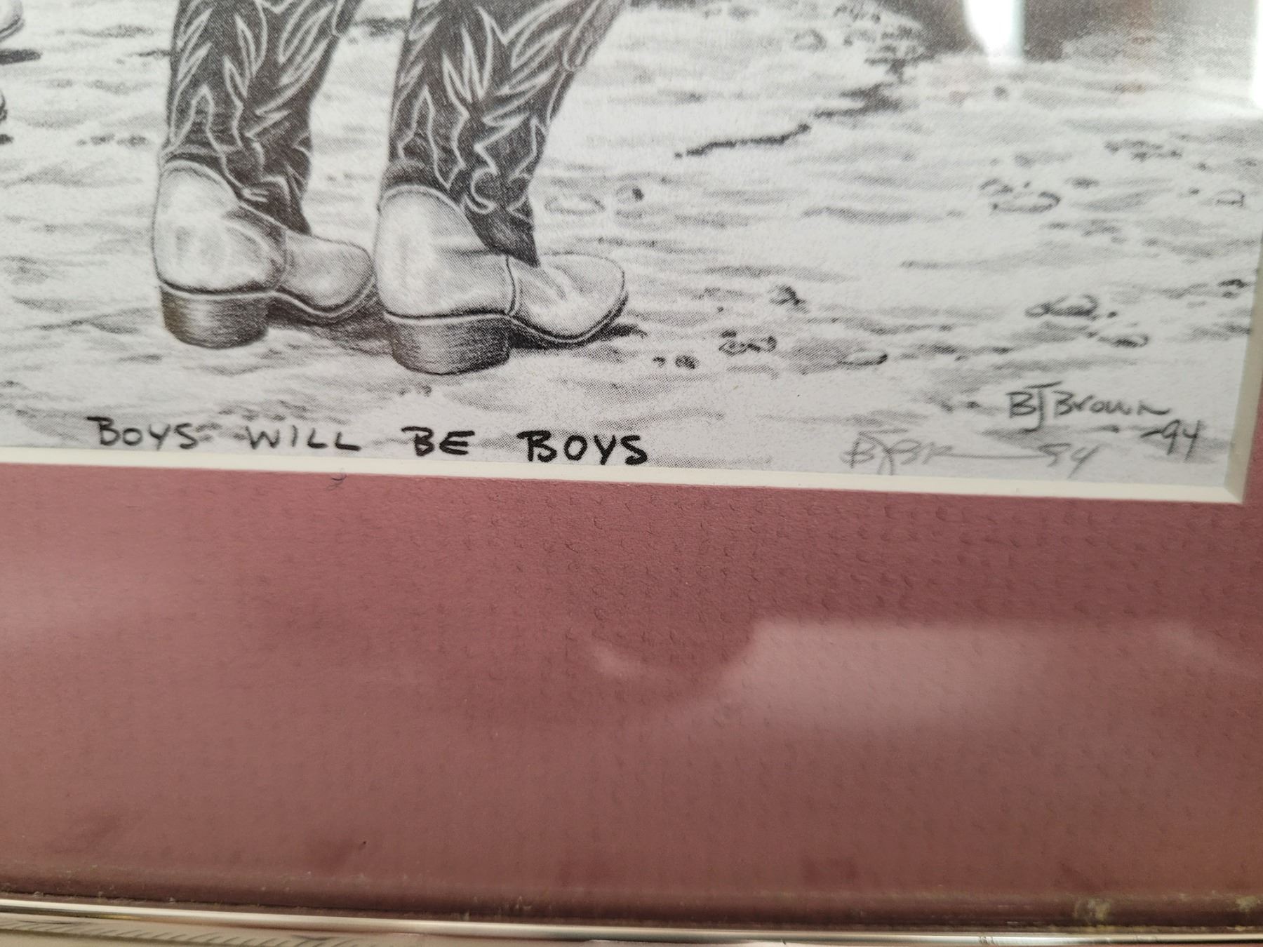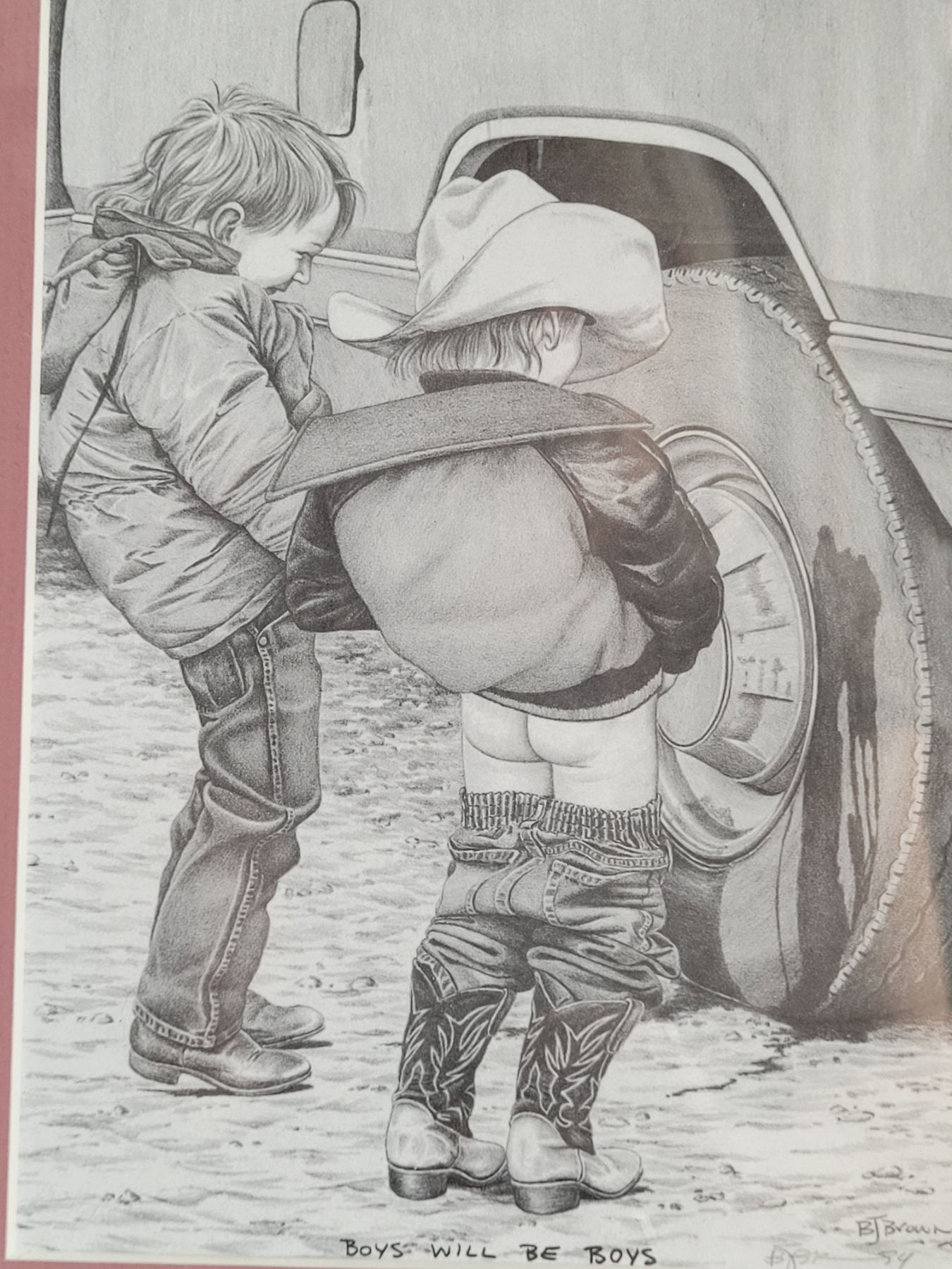 Bernie Brown framed & signed print. “Boy will be Boys”