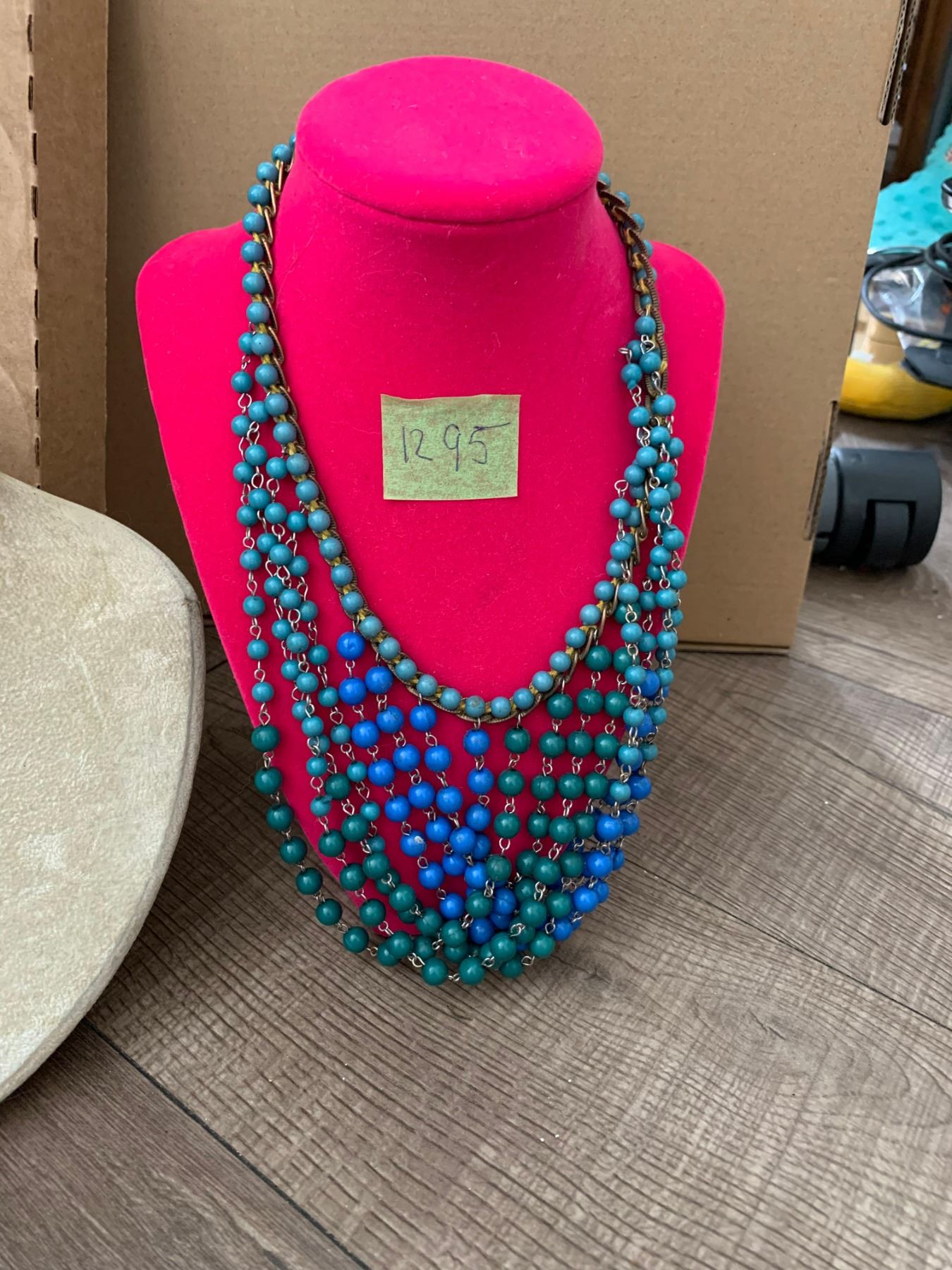 Bib necklace in blue and greens