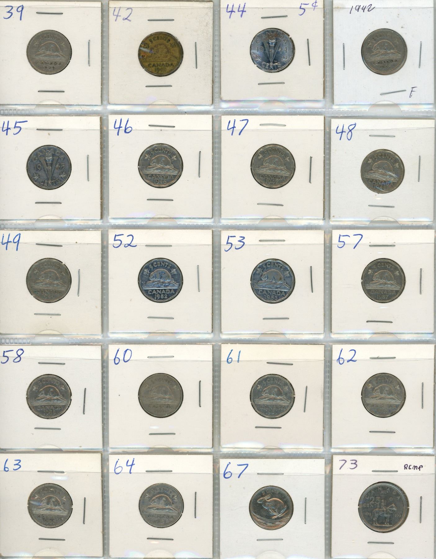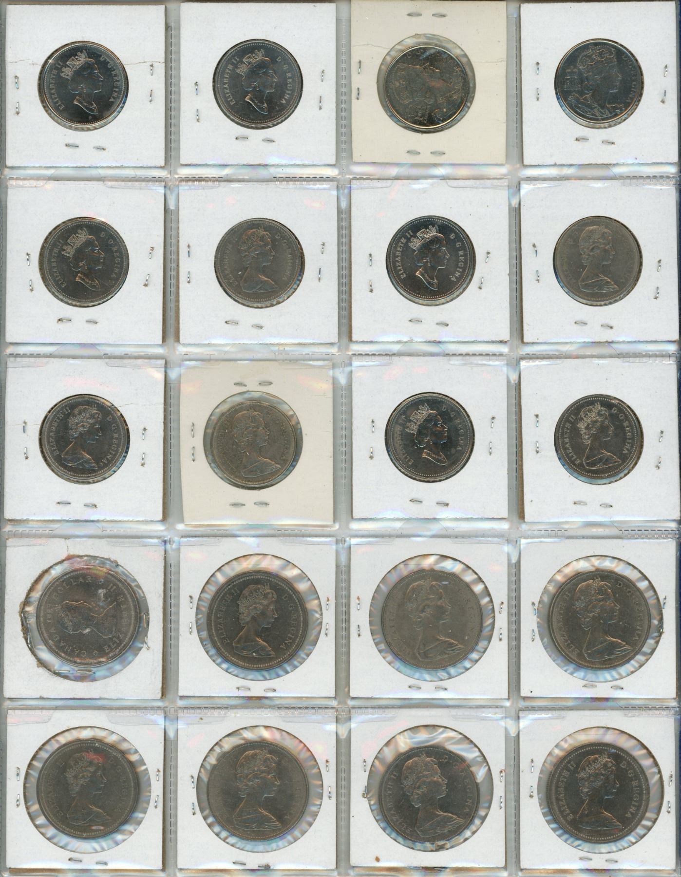 Binder od Canadian Large One Cents, Small One Cents, Five Cents, Twenty-Five Cent, Fifty Cents, One Dollars. (Total 60 Coins Including Everthing)