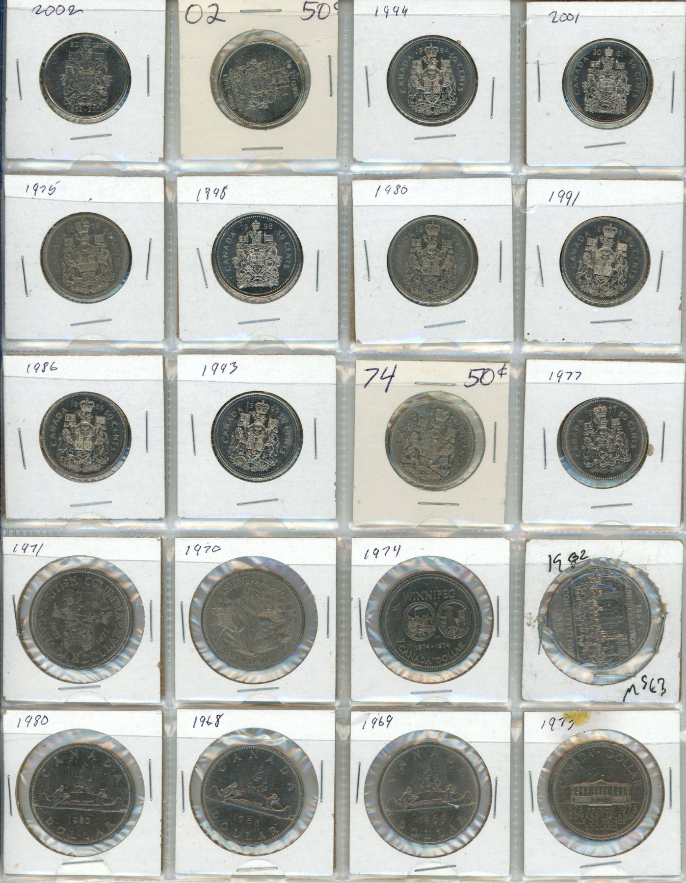 Binder od Canadian Large One Cents, Small One Cents, Five Cents, Twenty-Five Cent, Fifty Cents, One