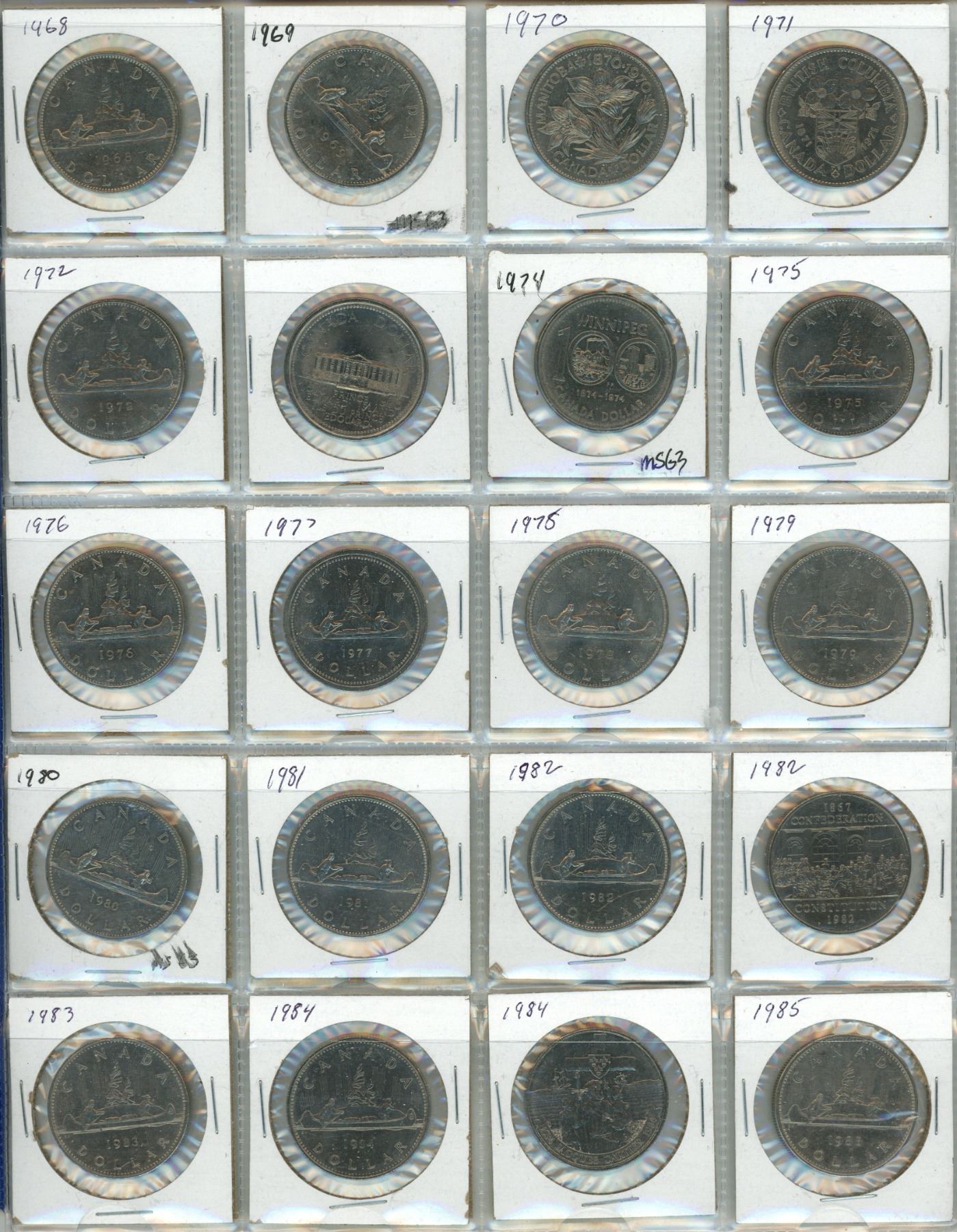 Binder of Canadian One Dollar- 1968-1987. (Total 22 Coins)