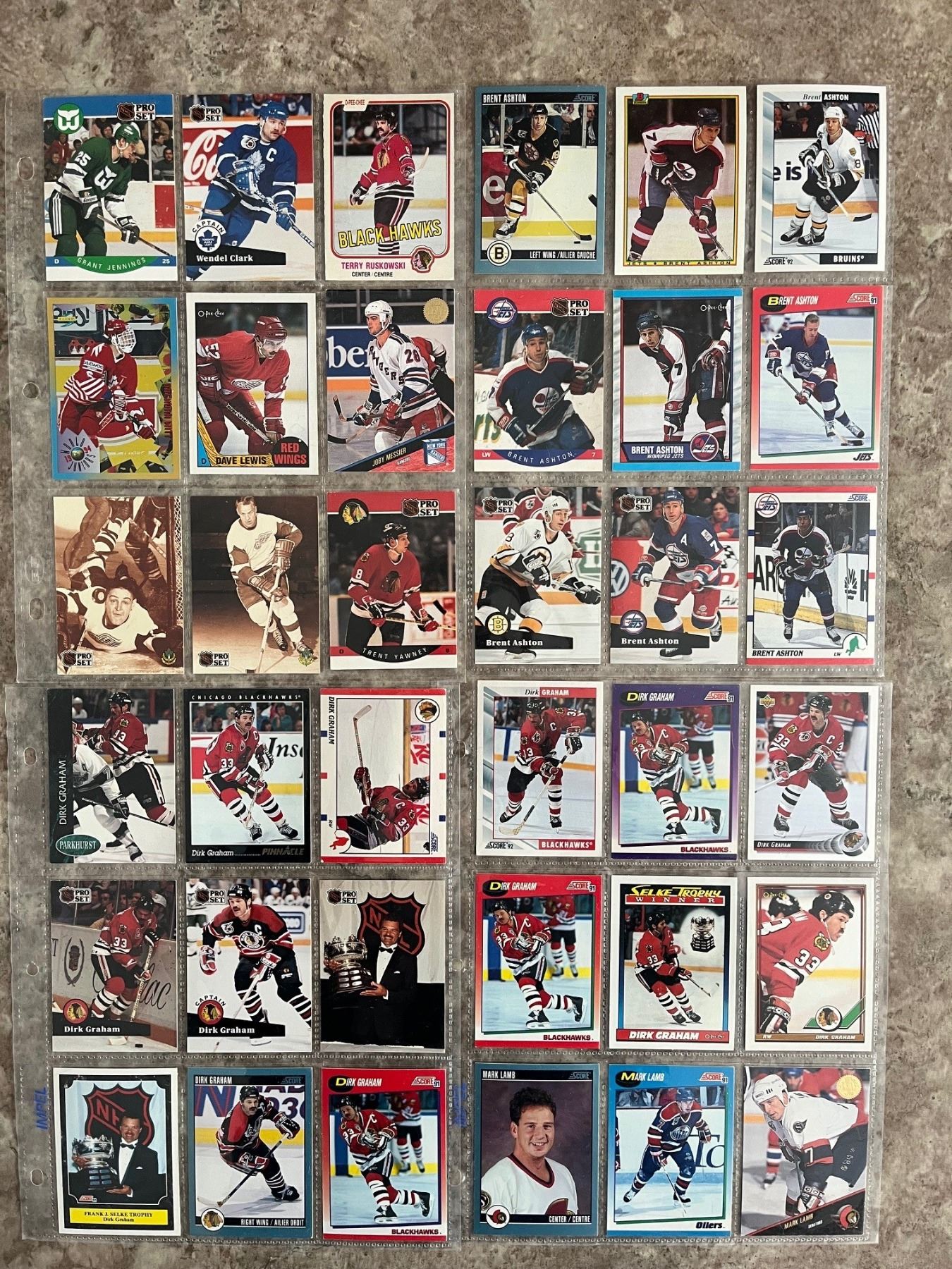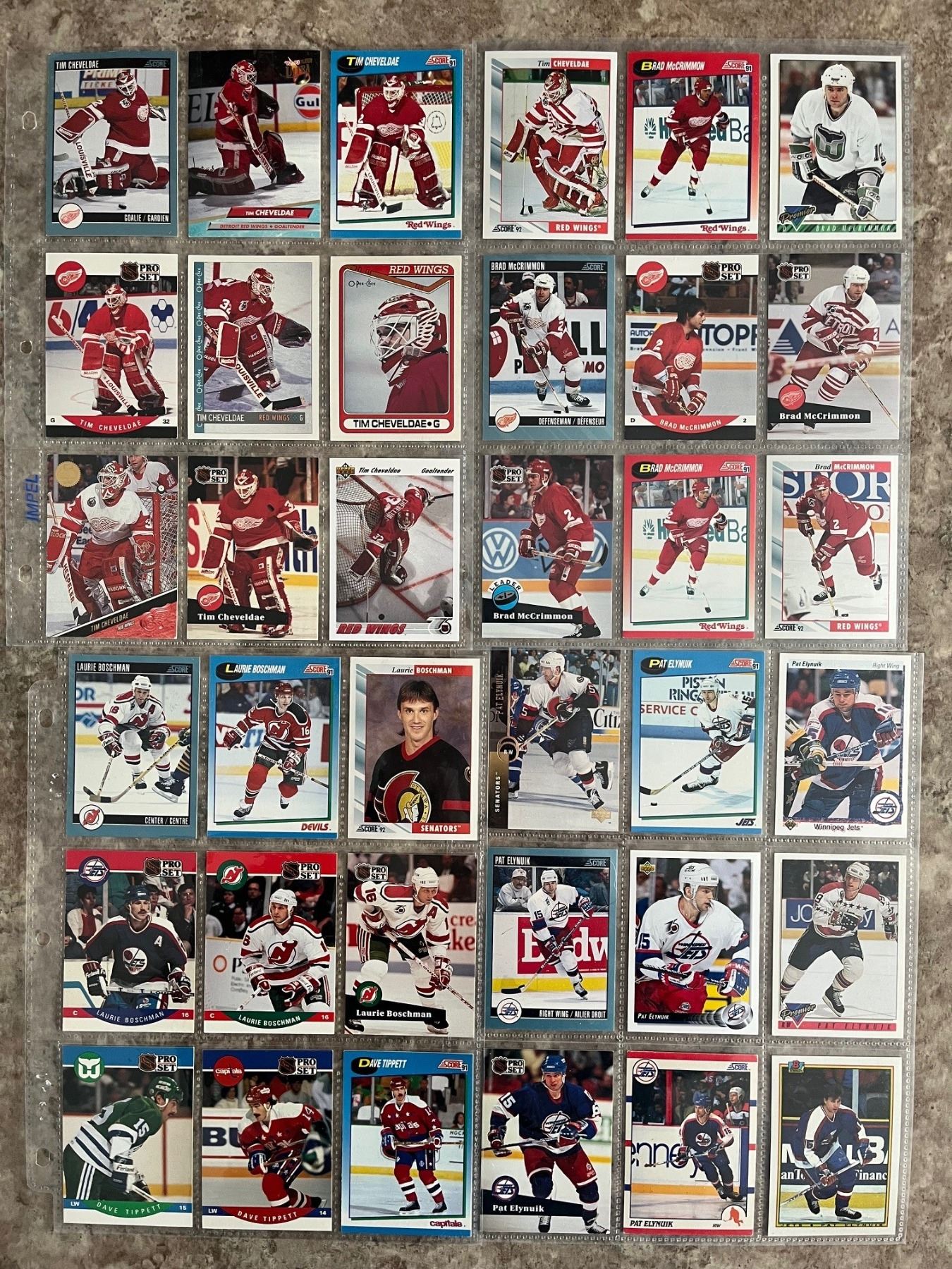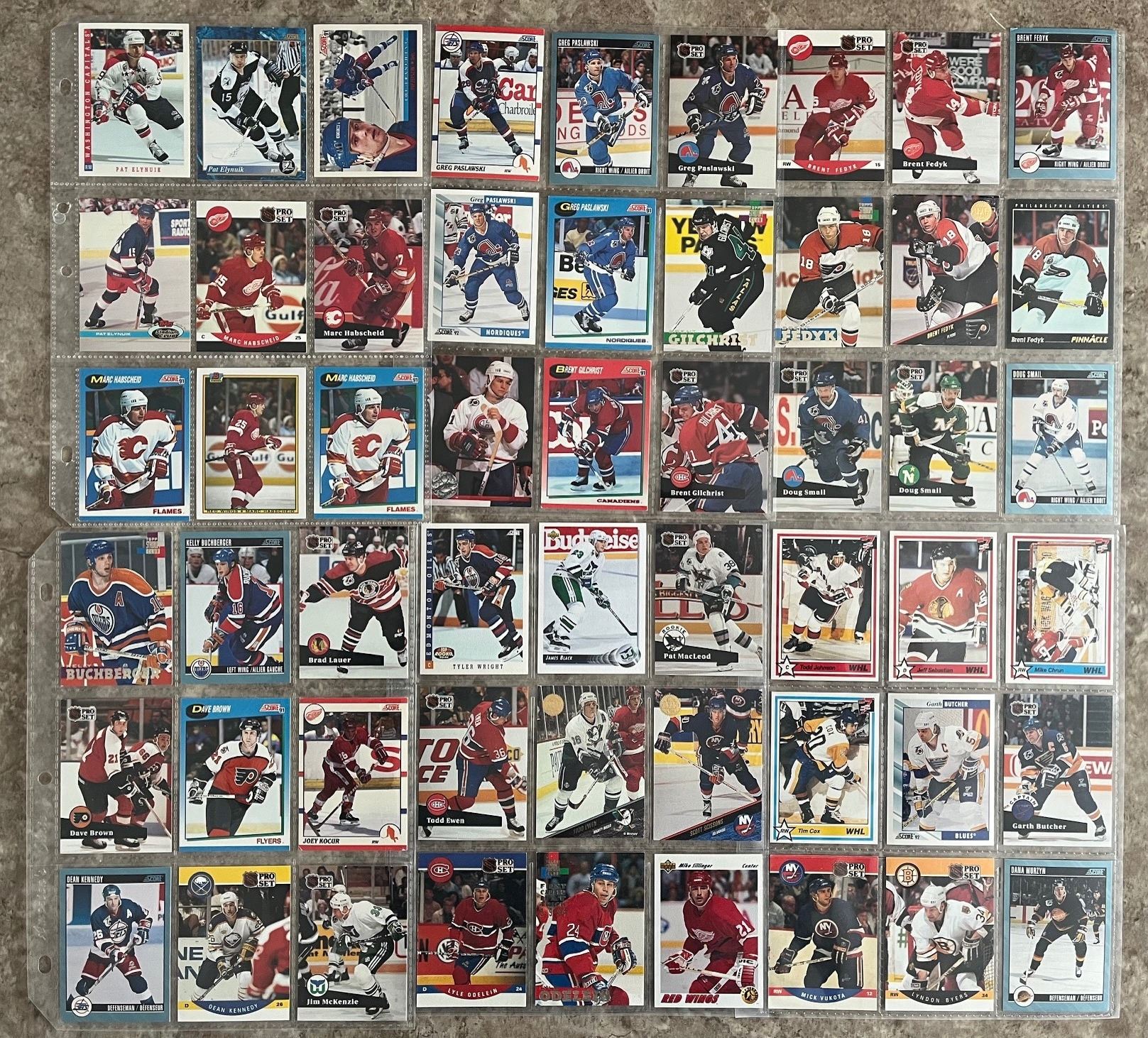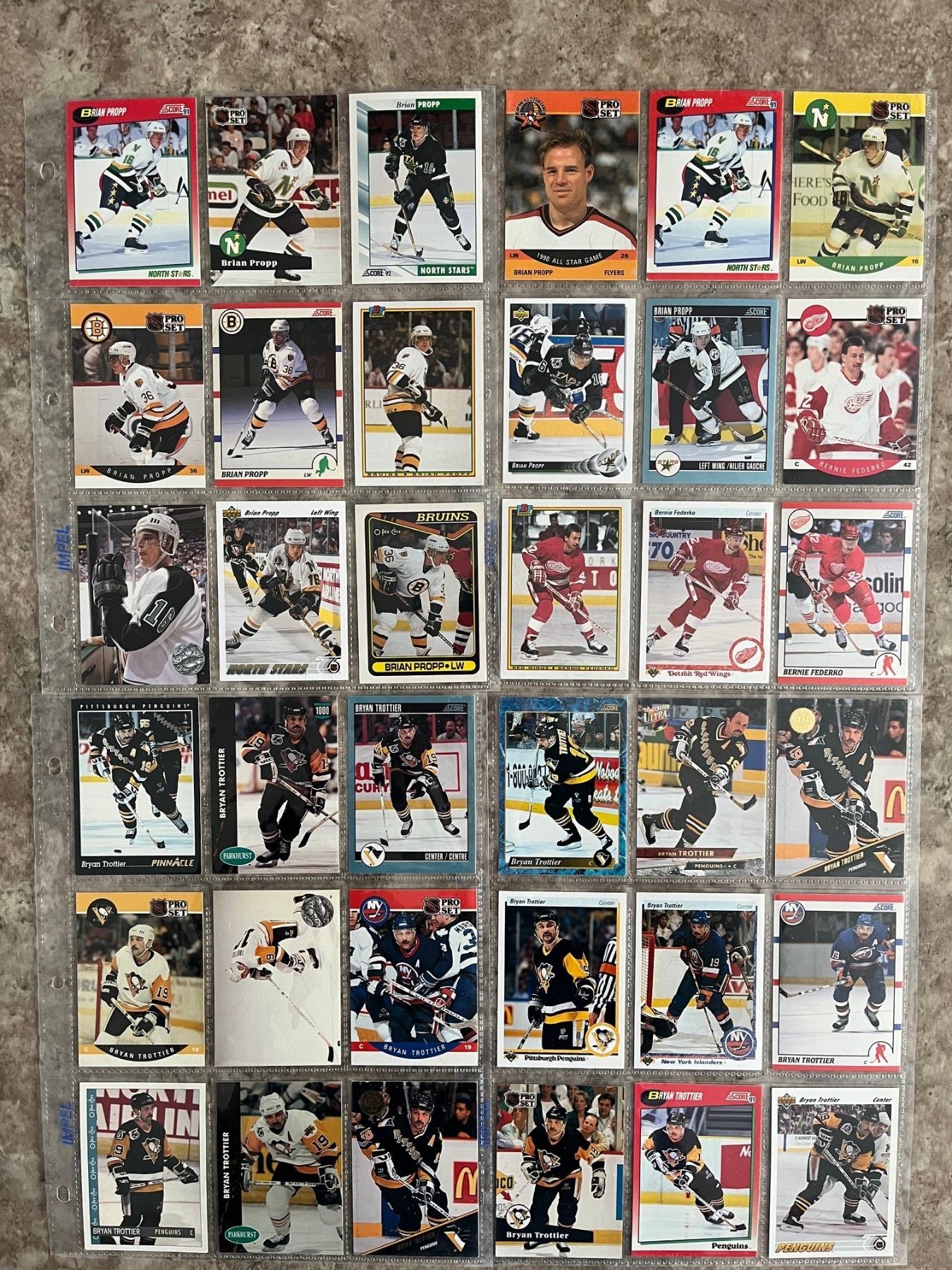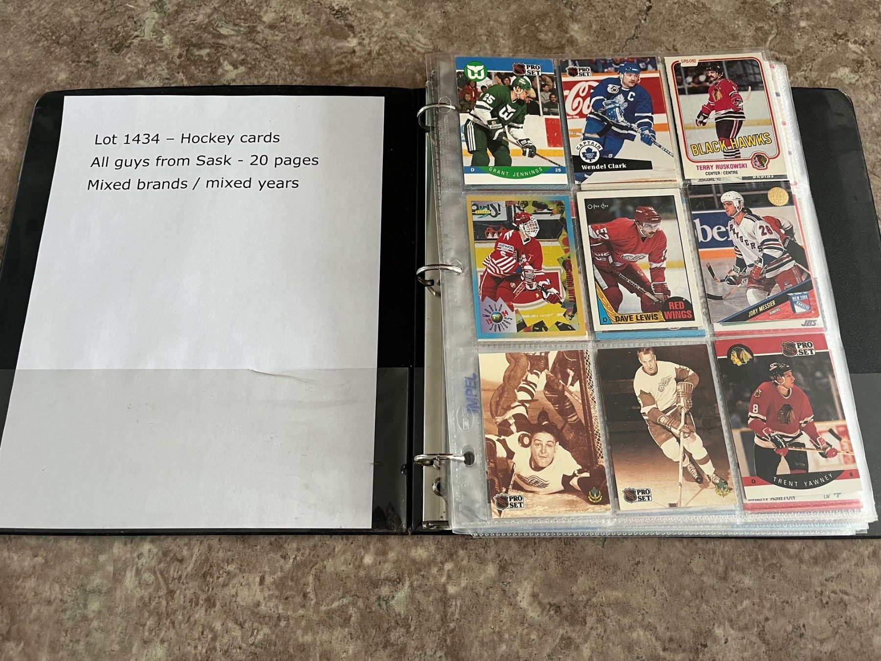 Binder with 20 pages of different hockey cards. 180 cards total. All guys from Sasky! Trottier, Habscheid, Elynuik, Propp. McCrimmon and many more! Mixed Brands. Mixed Years.