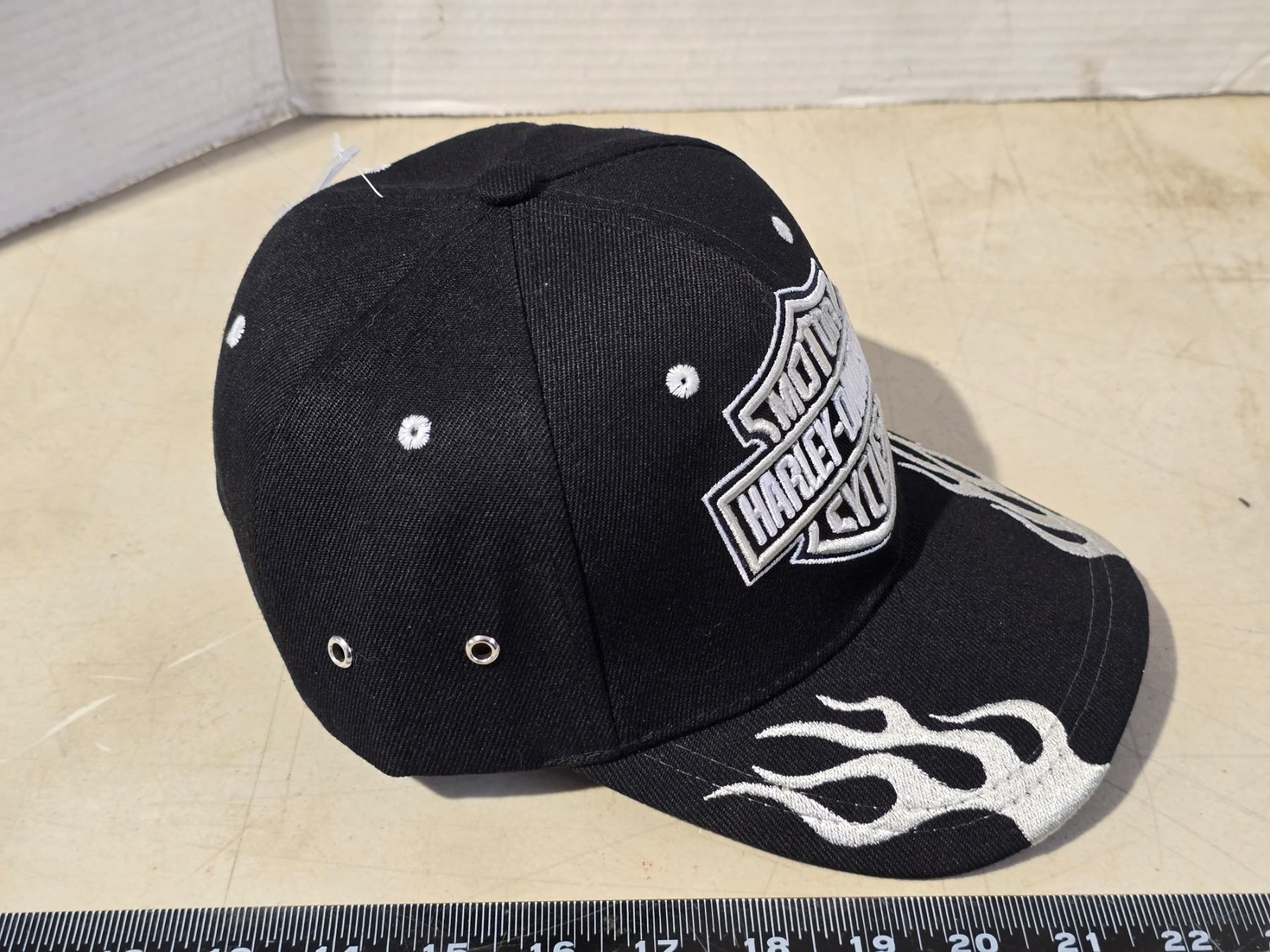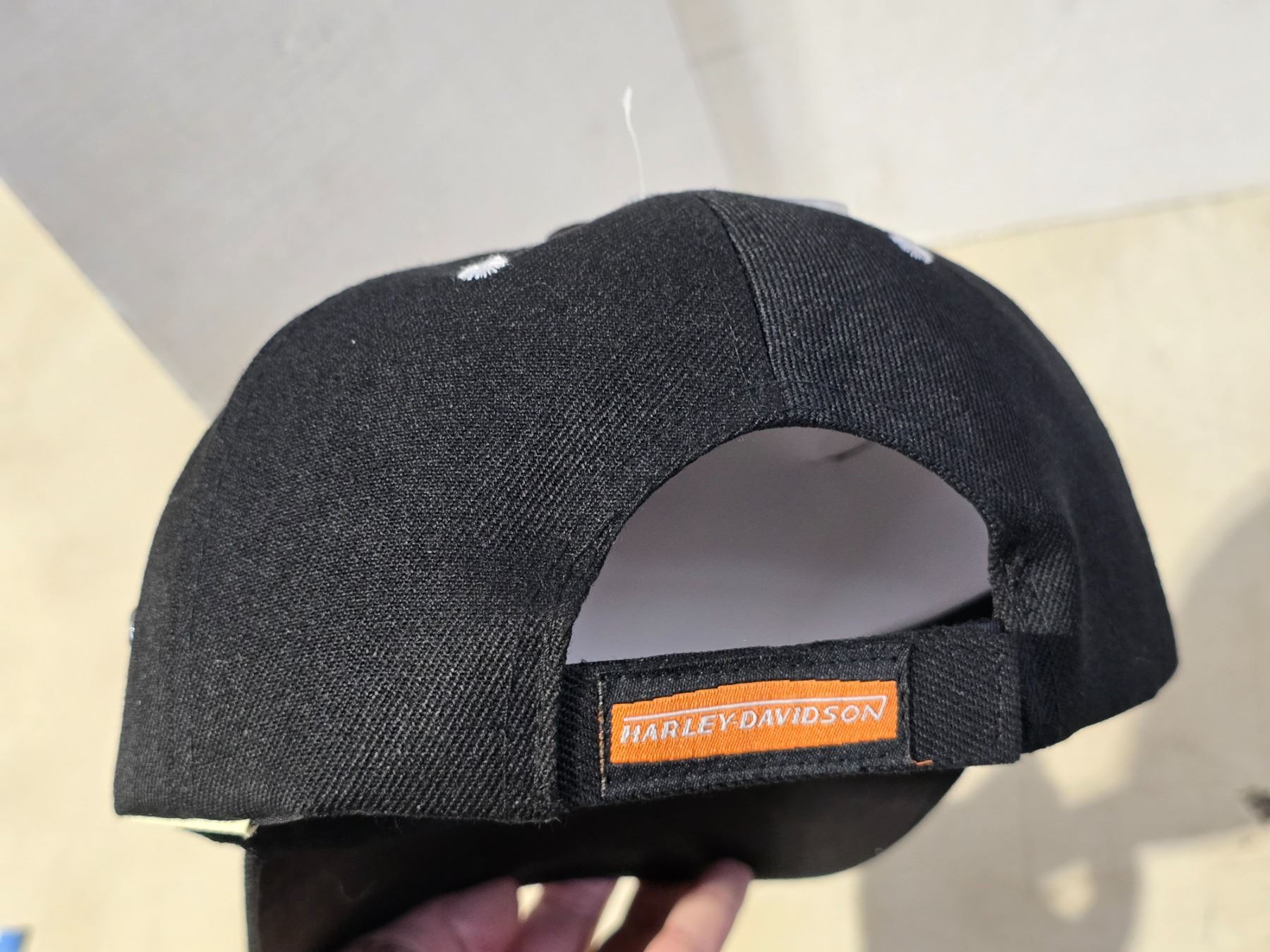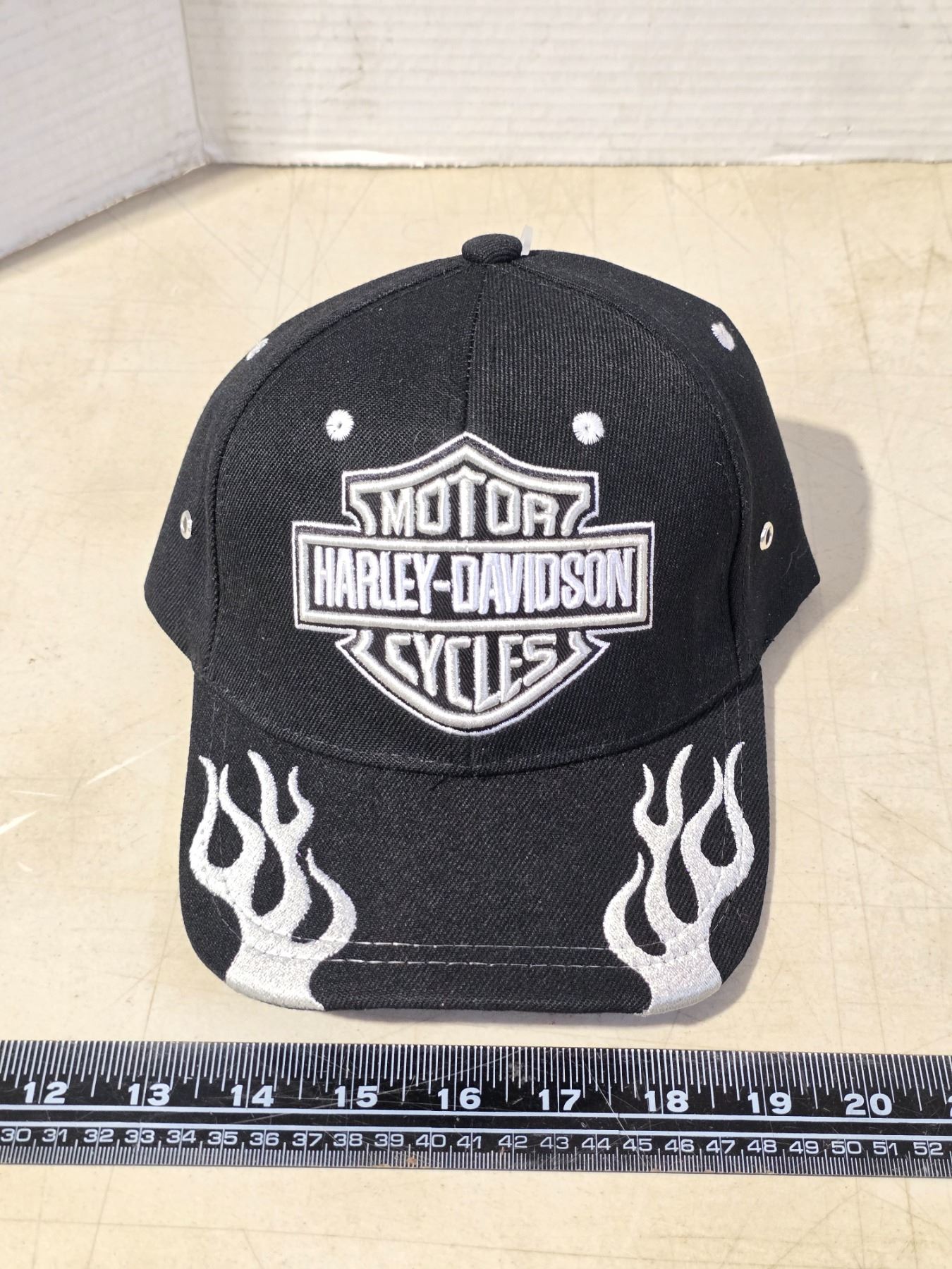 Black Harley Davidson hat, w/ white flame and Velcro back - new