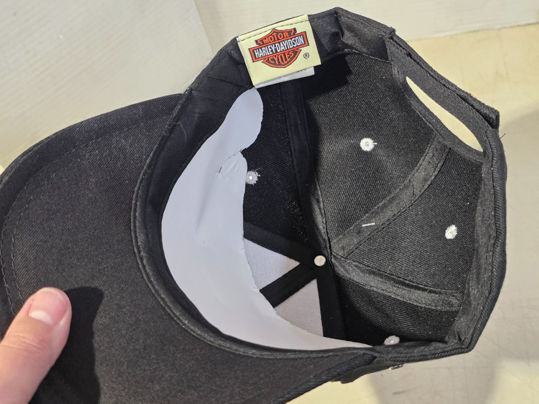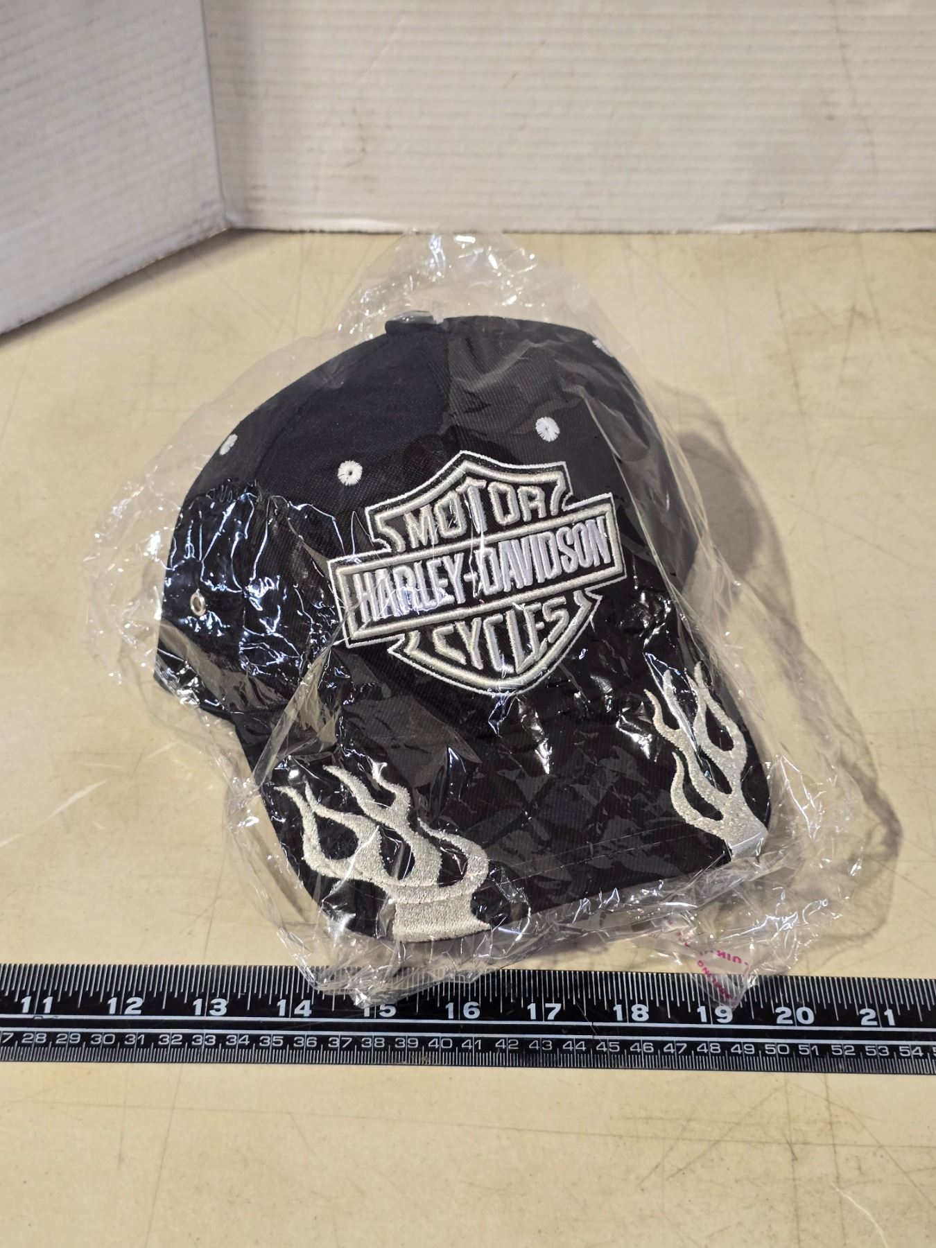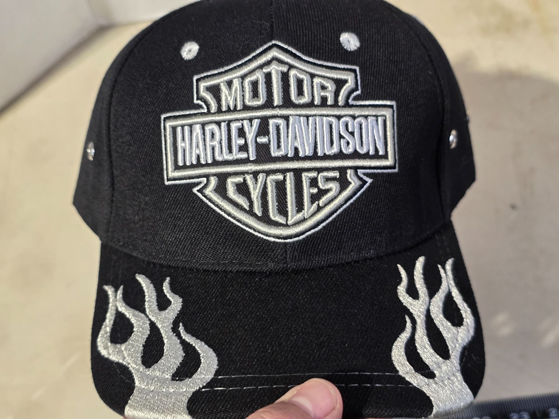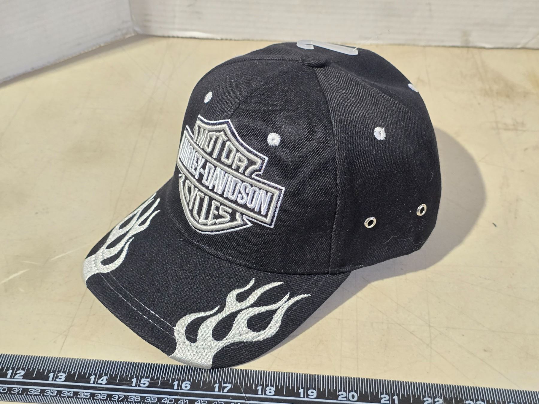 Black Harley Davidson hat, w/ white flame and Velcro back - new
