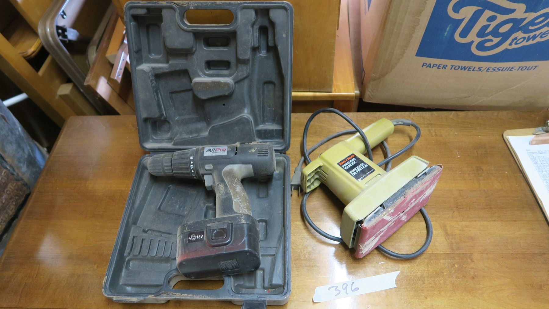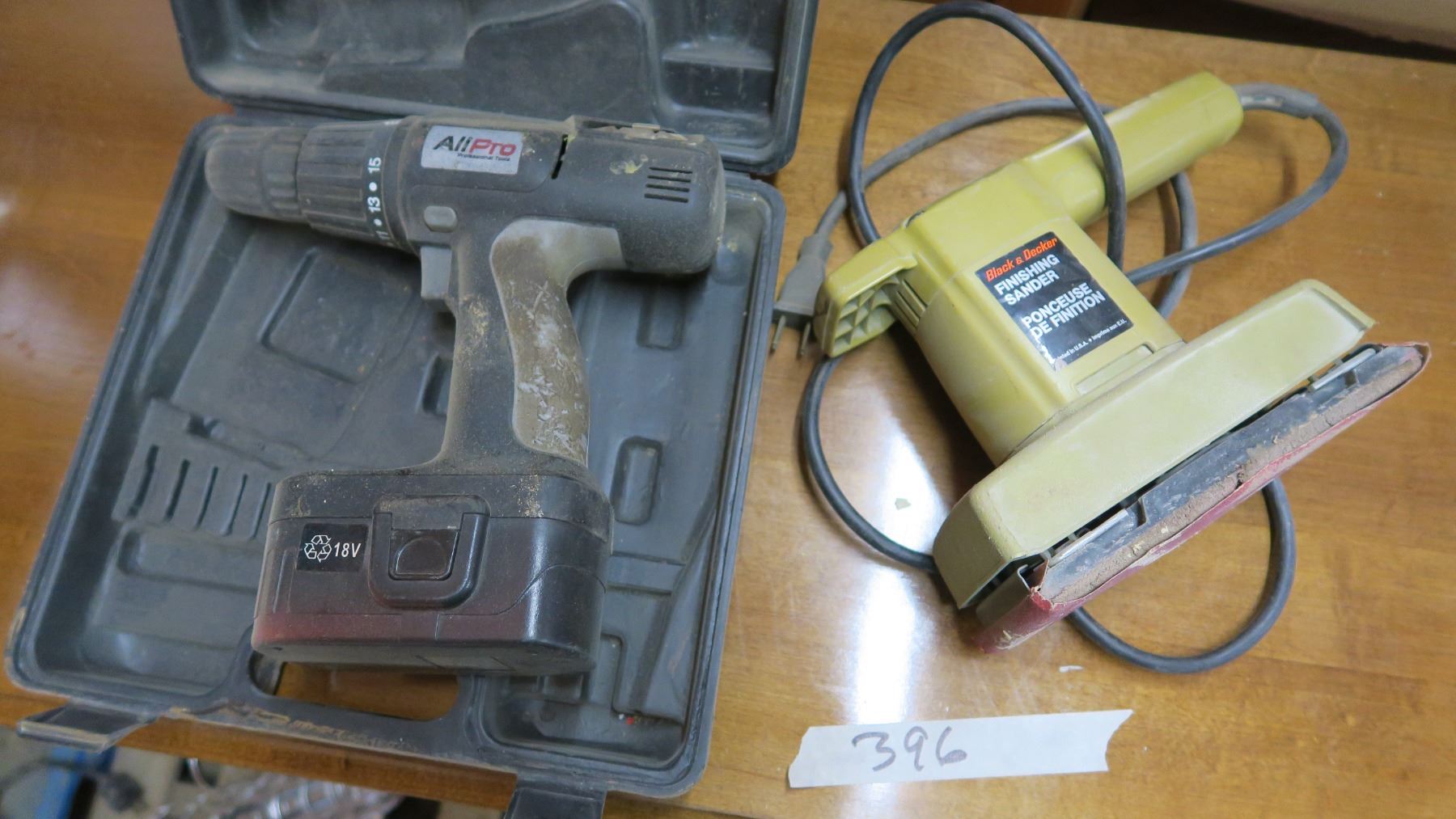 Black and Decker Finish Sander and AllPro 18V Cordless Drill (No Charger)