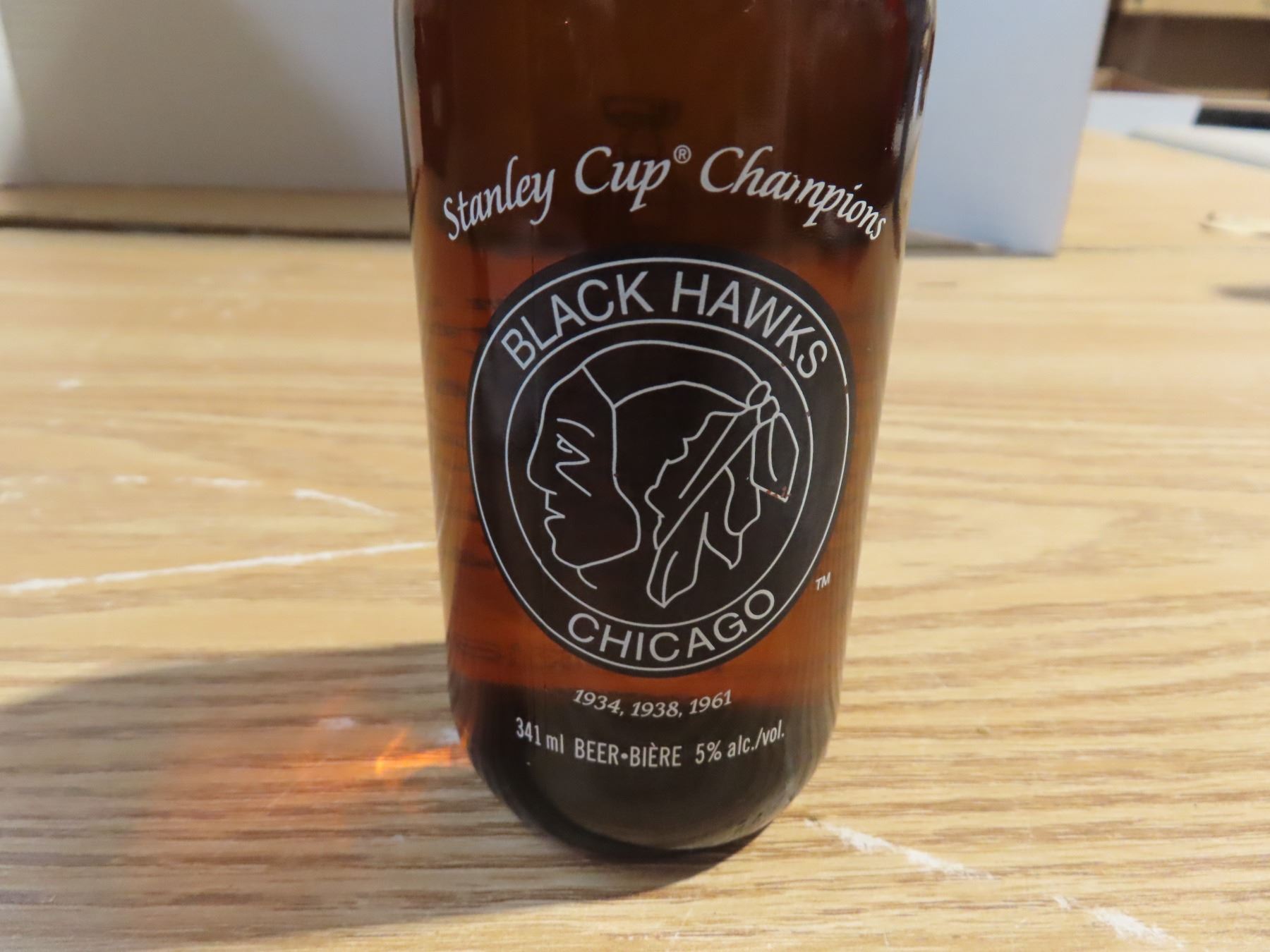 Black hawks-stanley cup champions- chichago unopened beer bottle