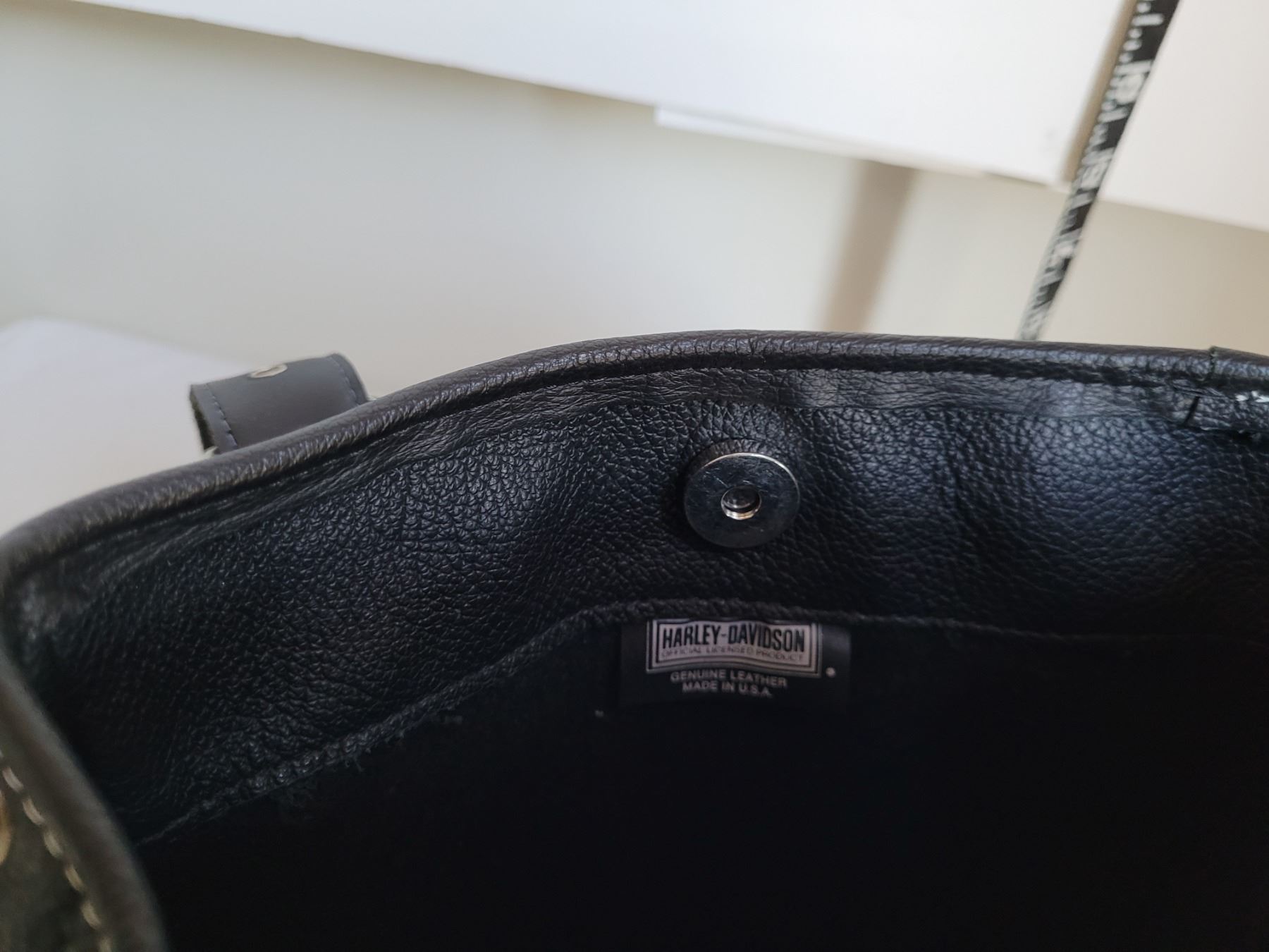 Black leather official Harley Davidson hand bag. Excellent , like new condition.