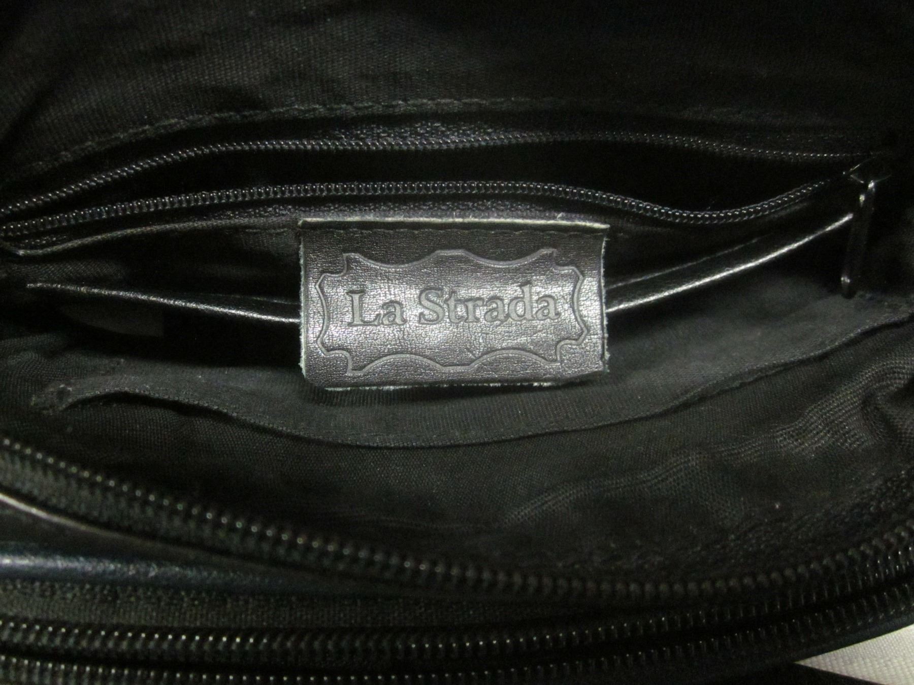 Blk. Leather 8"x6"x3" La Strada Shoulder purse adjustable strap