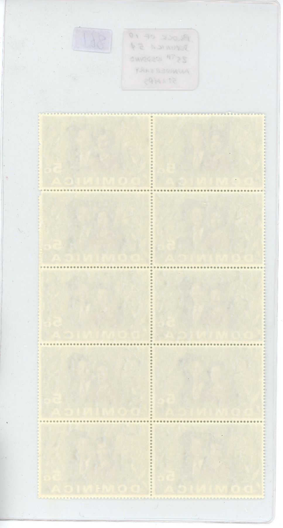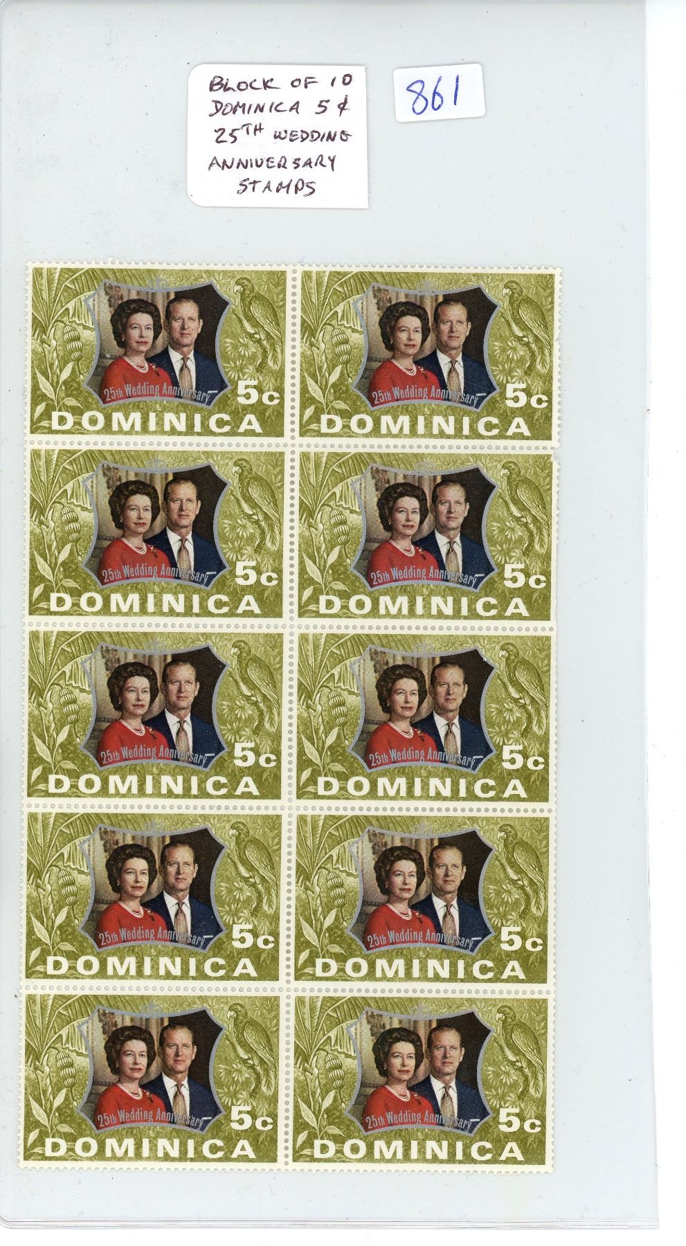 Block of 10 Dominica 5 Cents Stamps featuring the 25th Silver Wedding Anniversary of Queen Elizabeth & Prince Philip. Mint.