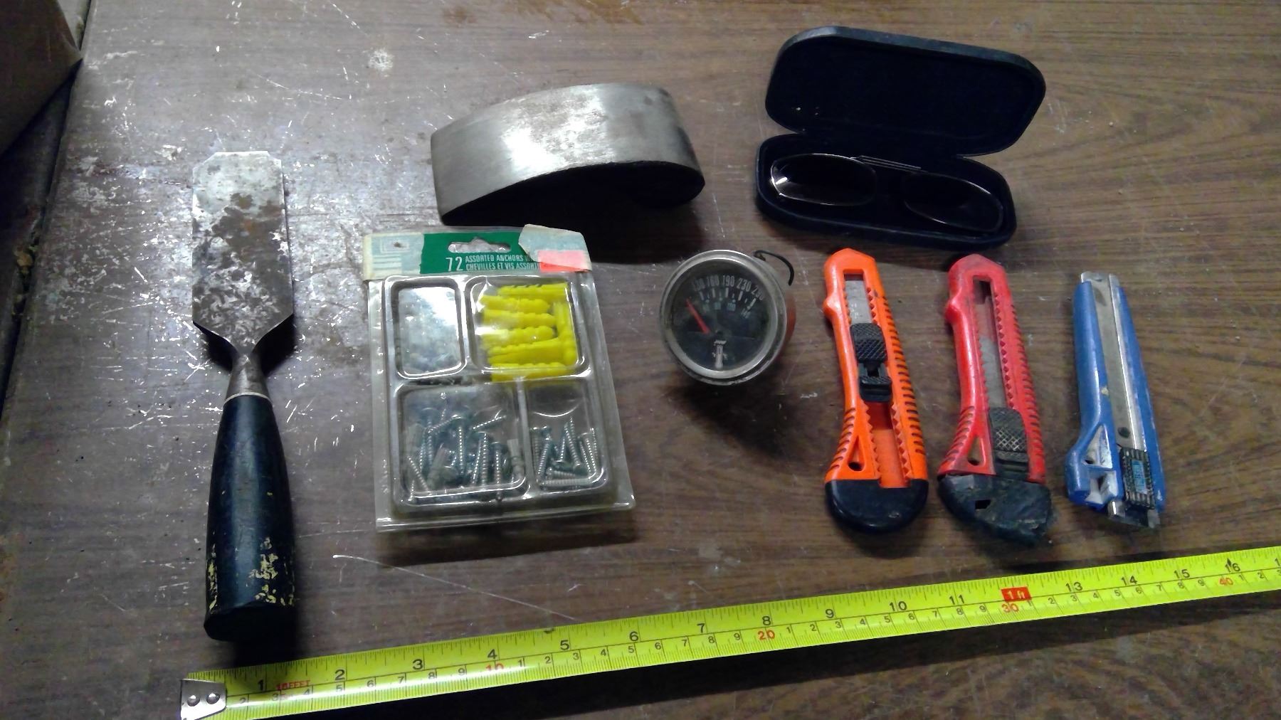 Blow Torch, Measuring Tapes, Anchors and Screws, Box Cutter, File, Gauges, Vice, etc.