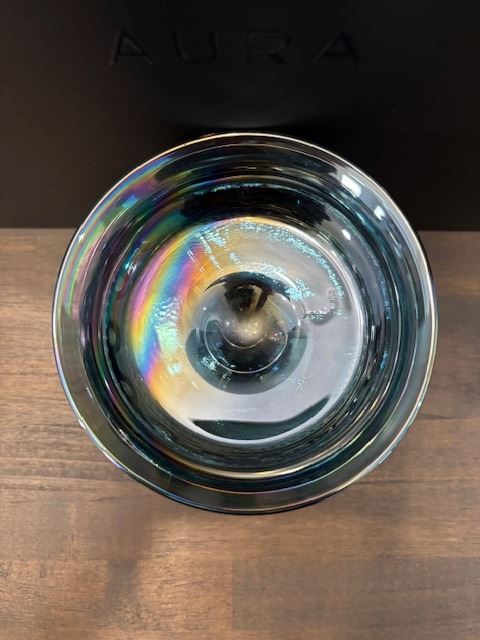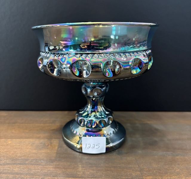 Blue Carnival Glass “Kings Crown” Thumbprint Compote