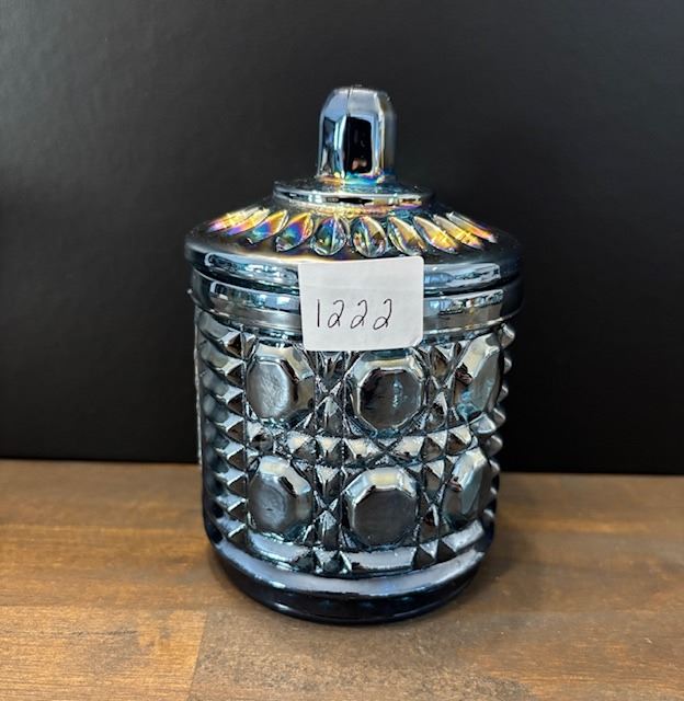 Blue Carnival Glass Sugar Container with Lid