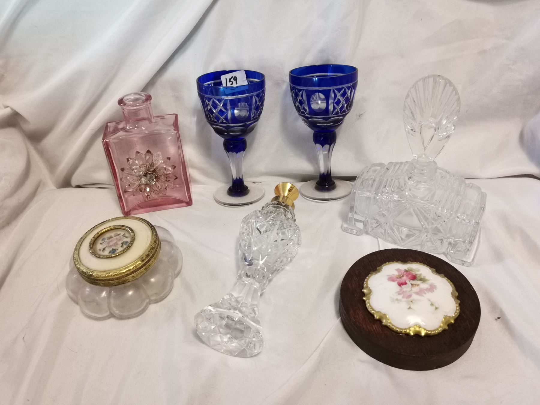Blue Crystal Glasses, Perfume Bottles, Trinket Box, etc.