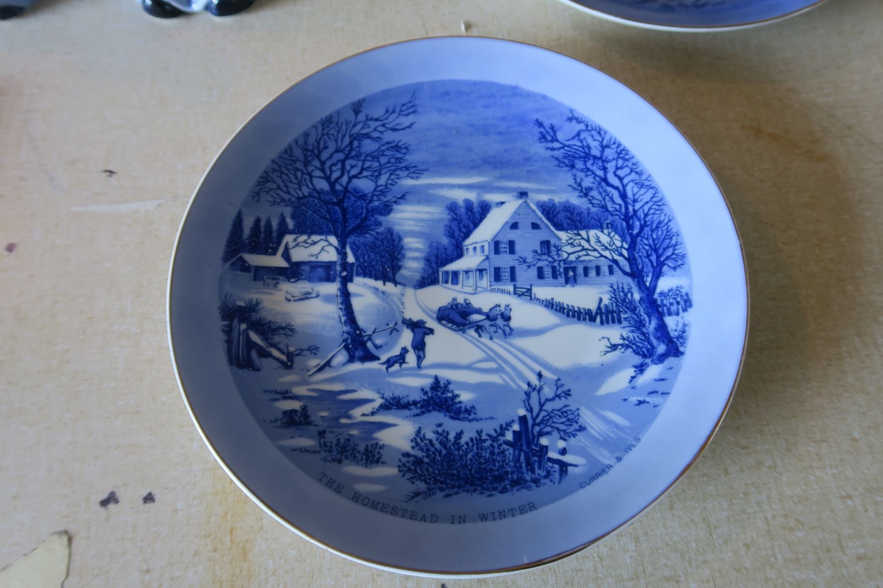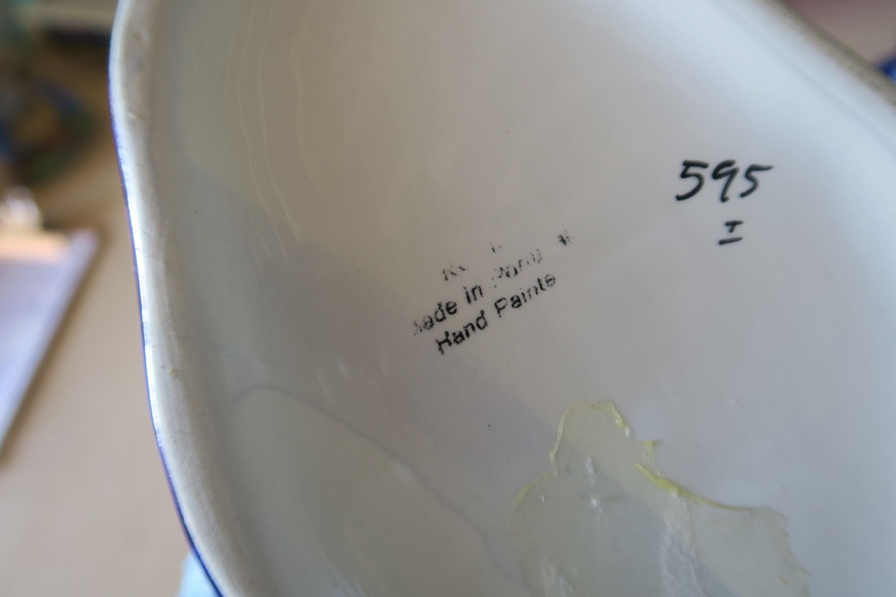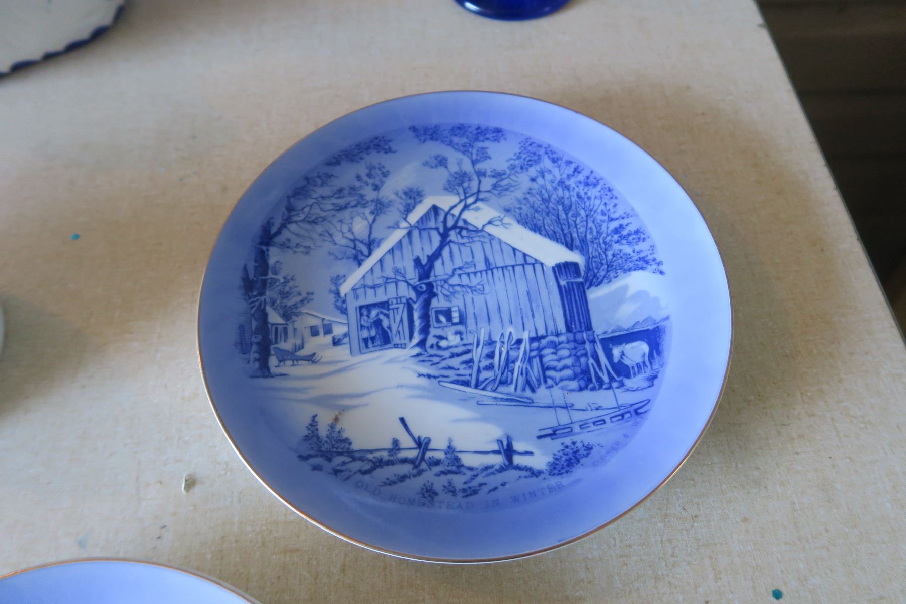 Blue Decorative Glass/Porcelain Items - Swan Bowl Vase X2, Plate X2, Tile X1, Cups X2, Milk/Sugar Co