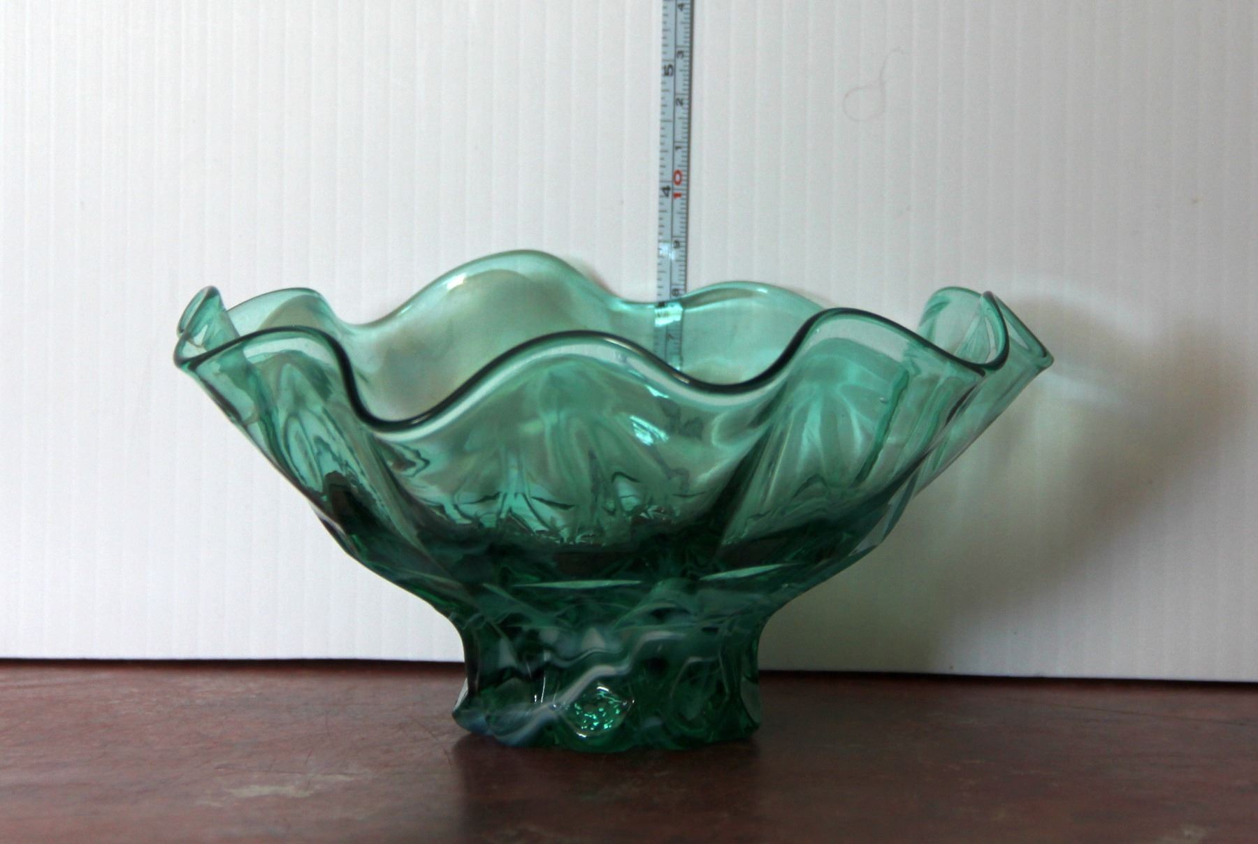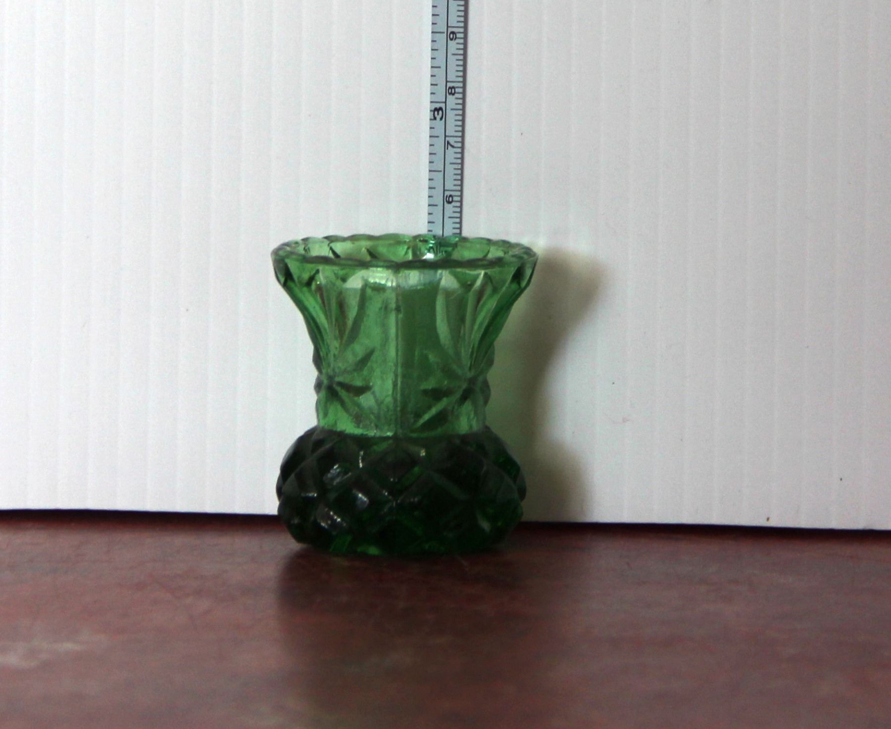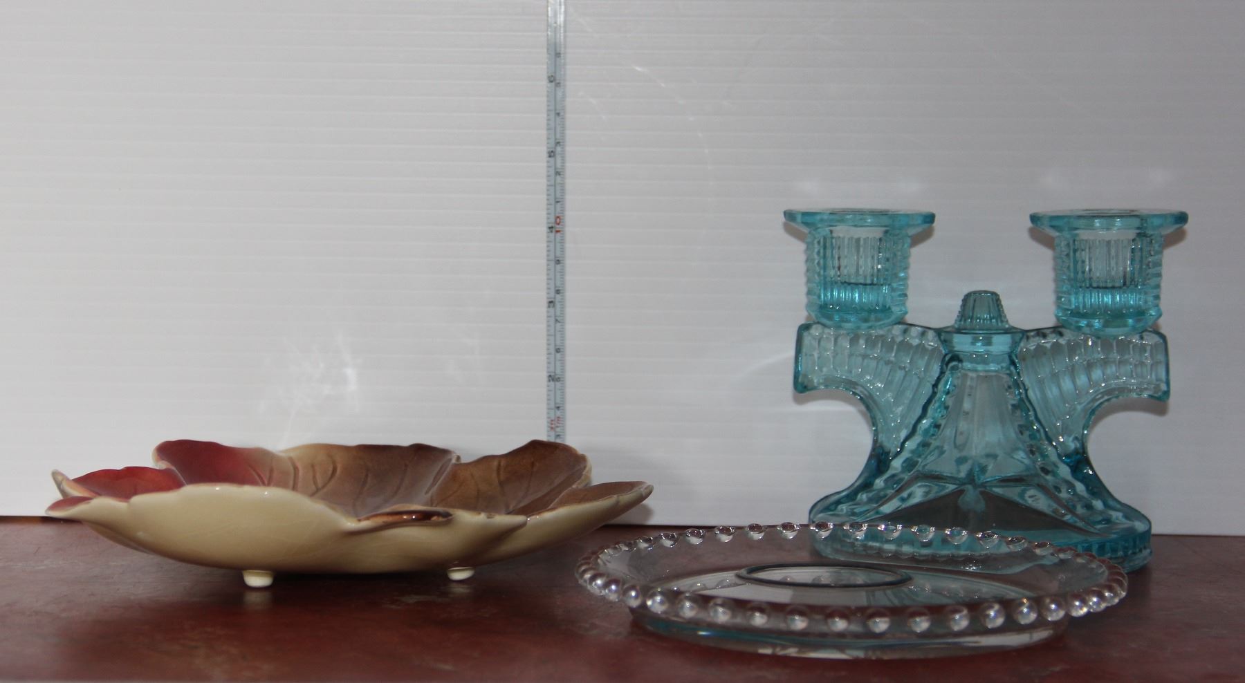 Blue Glass Candle Holder and Candy Dish, Blue Glass Bowl and Green Tooth Pick Holder