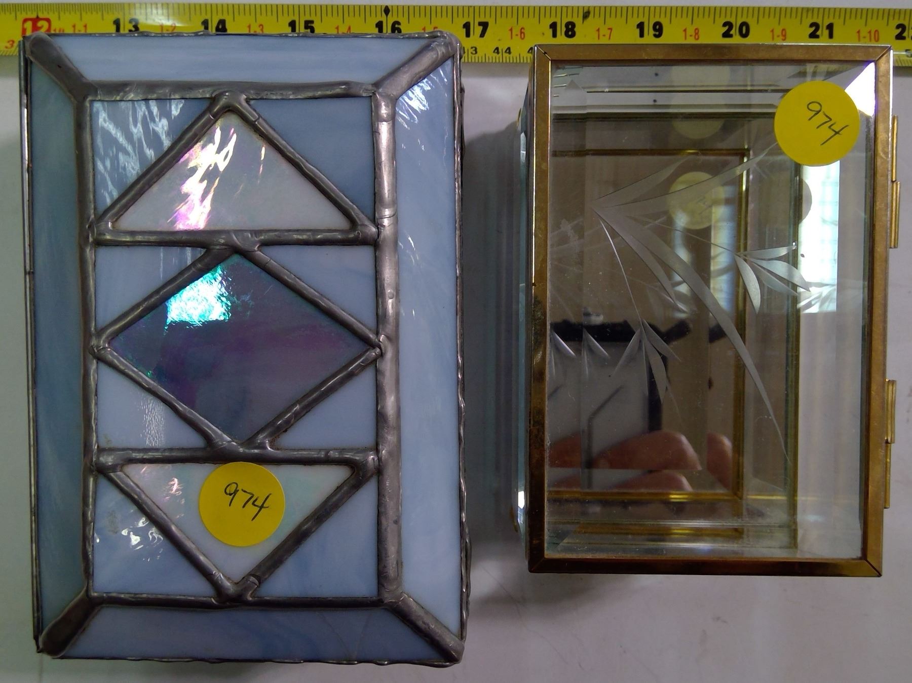 Blue Lead Glass & Bevel Clear Glass Trinket Boxes