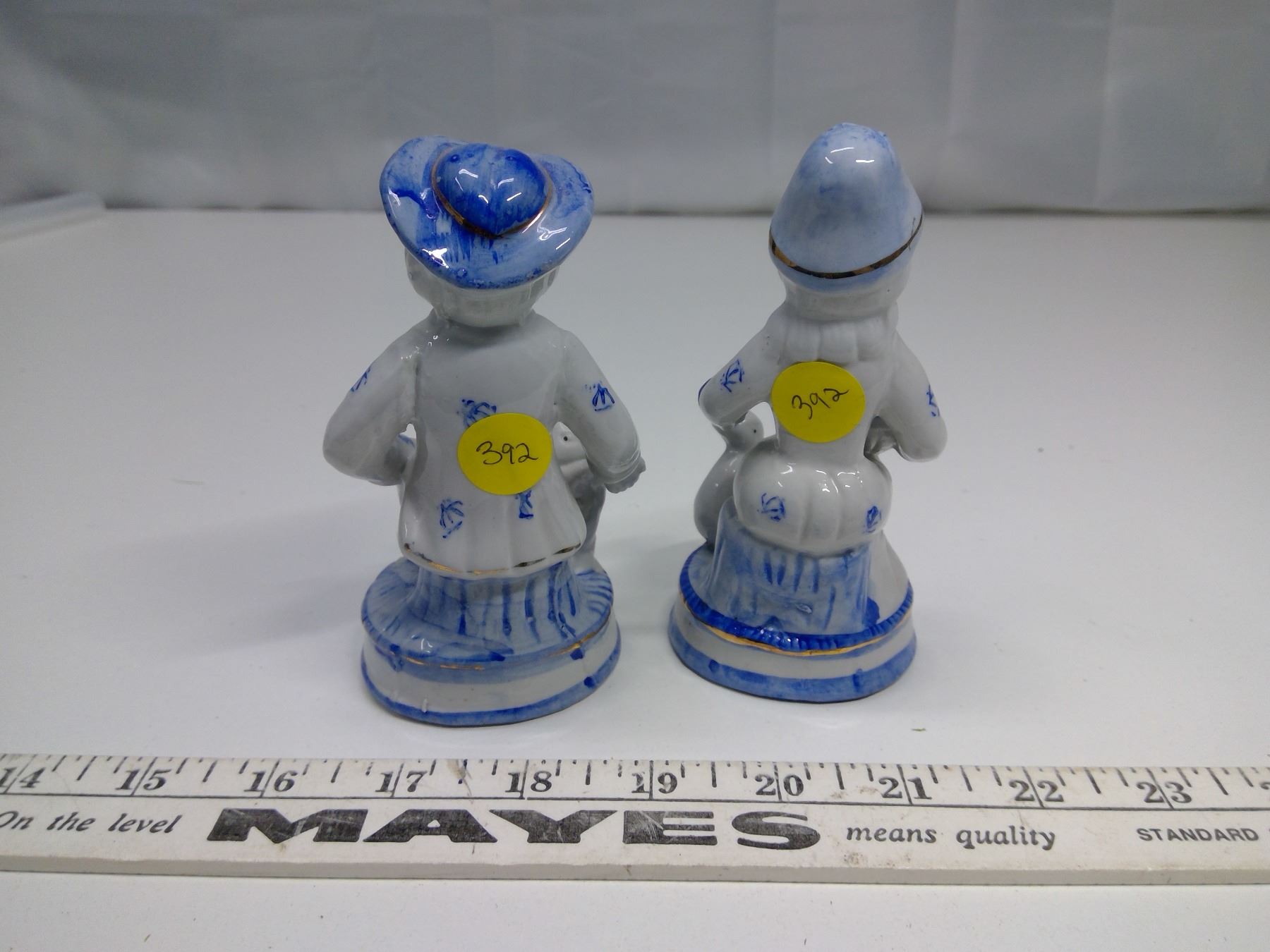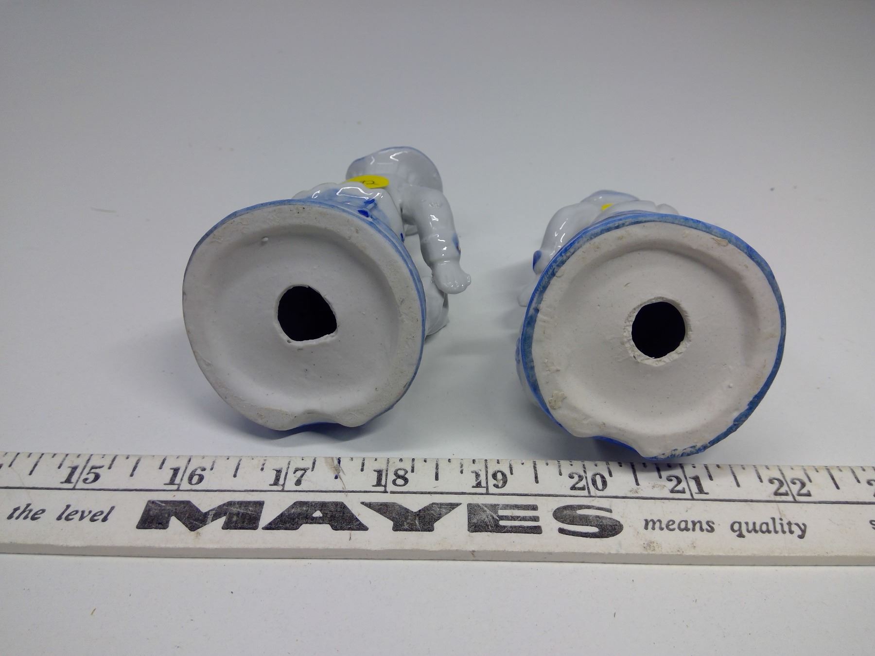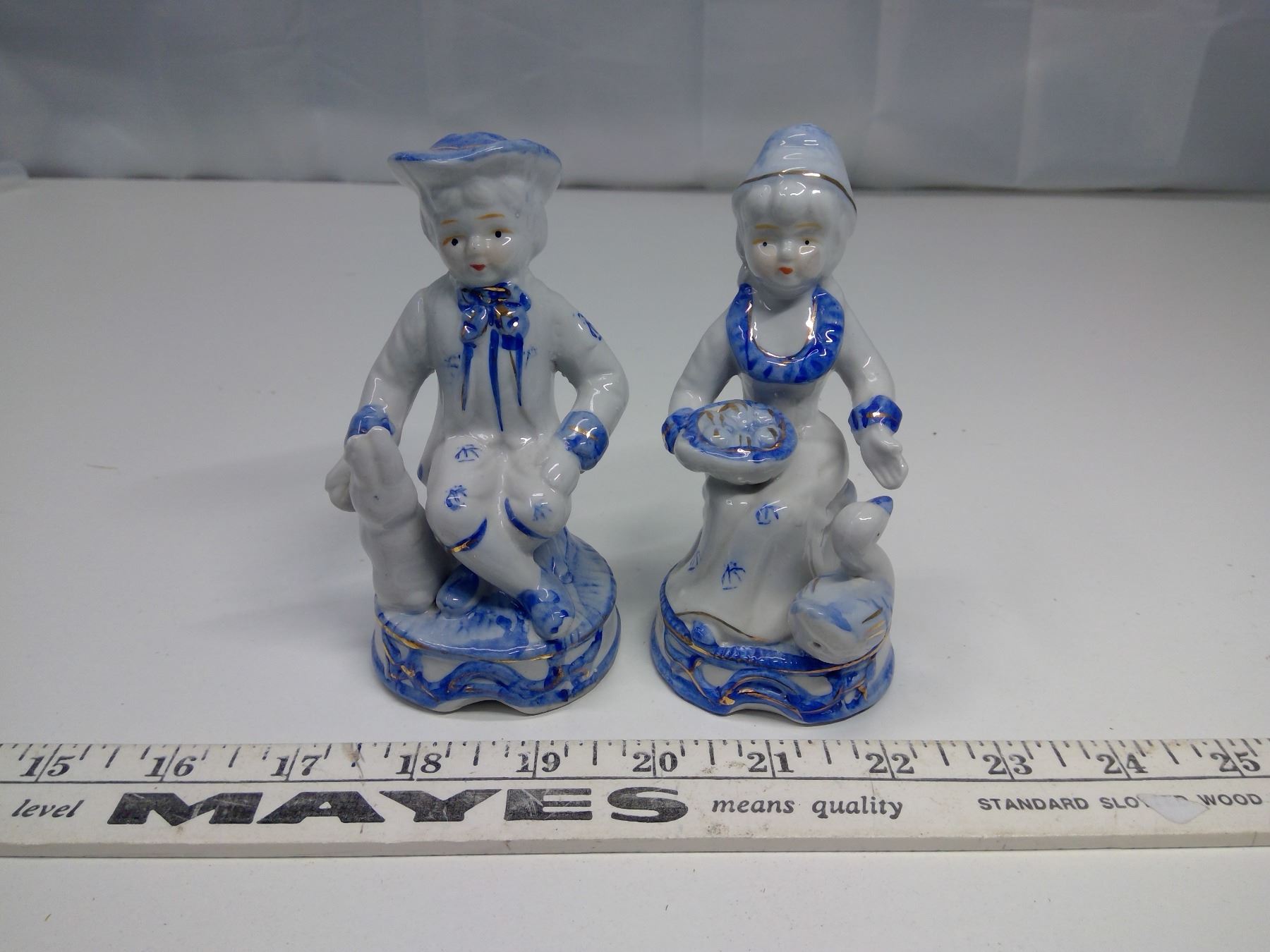 Blue Man and Woman Feeding Animals Ceramic Ornaments (2)