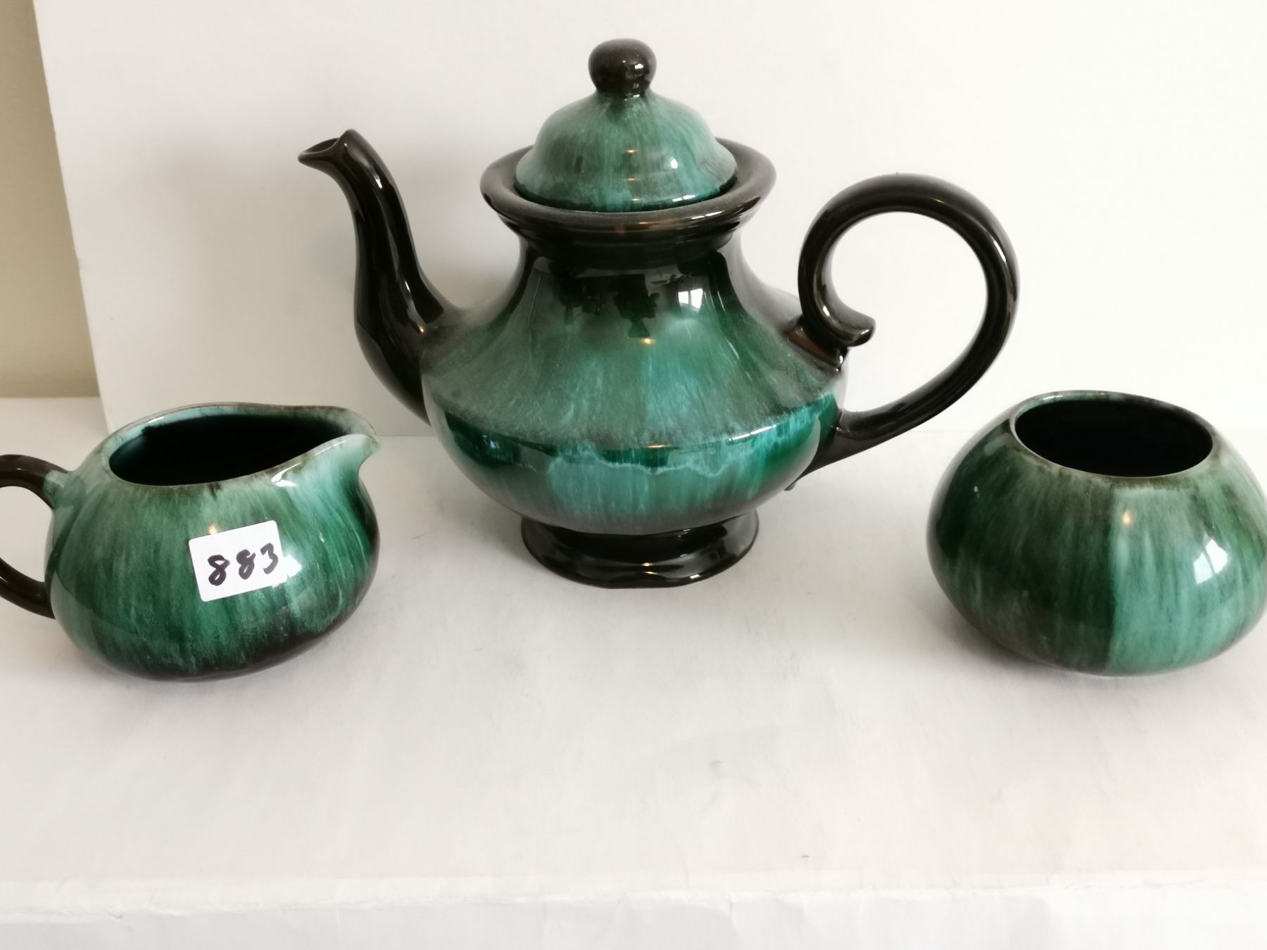 Blue Mountain Pottery Teapot, Cream & Sugar Bowl Set