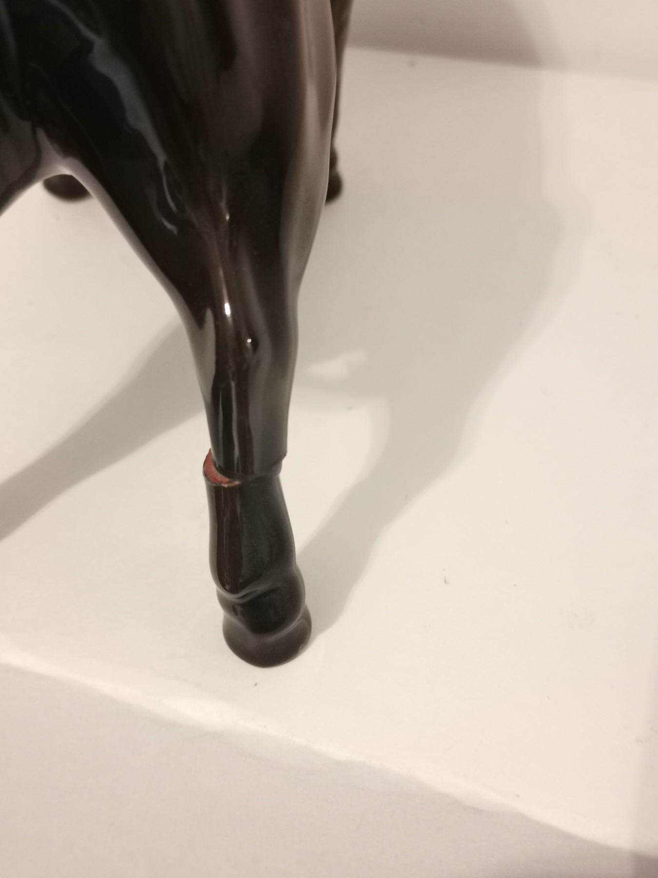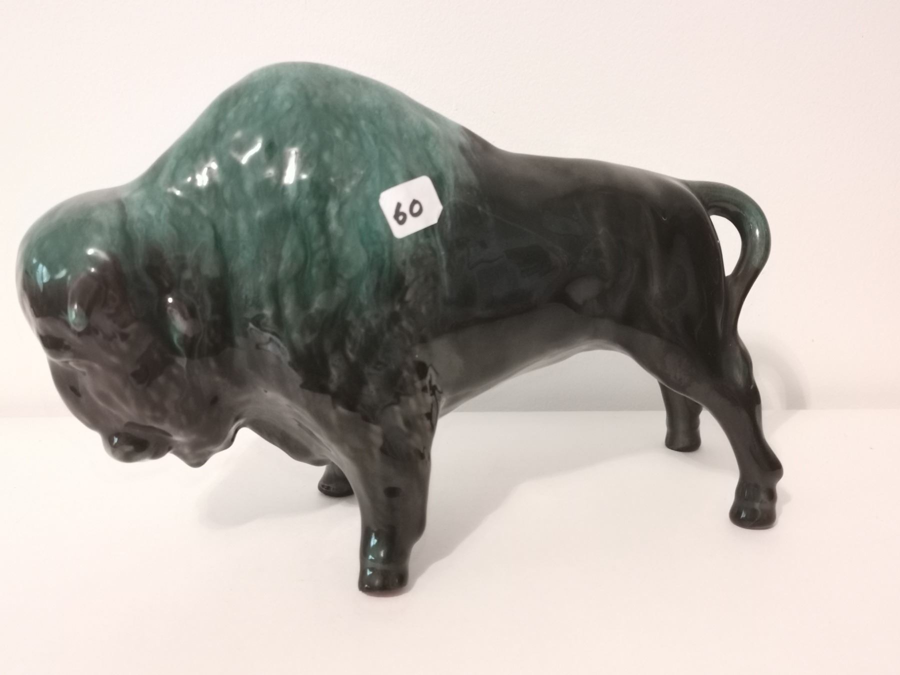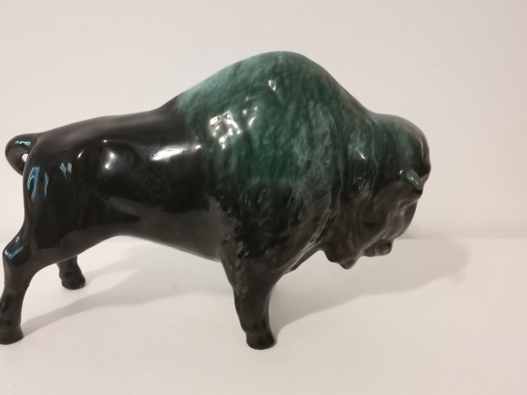 Blue Mountain Pottery buffalo - leg repaired 10.5"