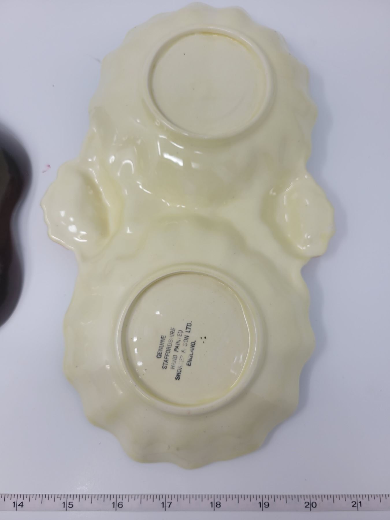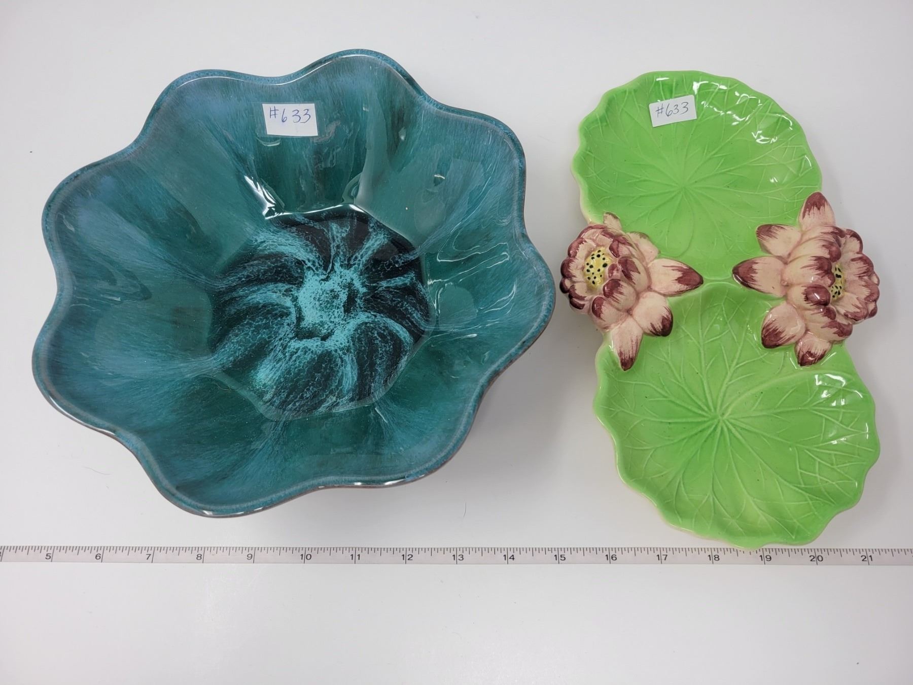 Blue Mountain pottery bowl, 10”, and waterlily relish tray, Shorter, England