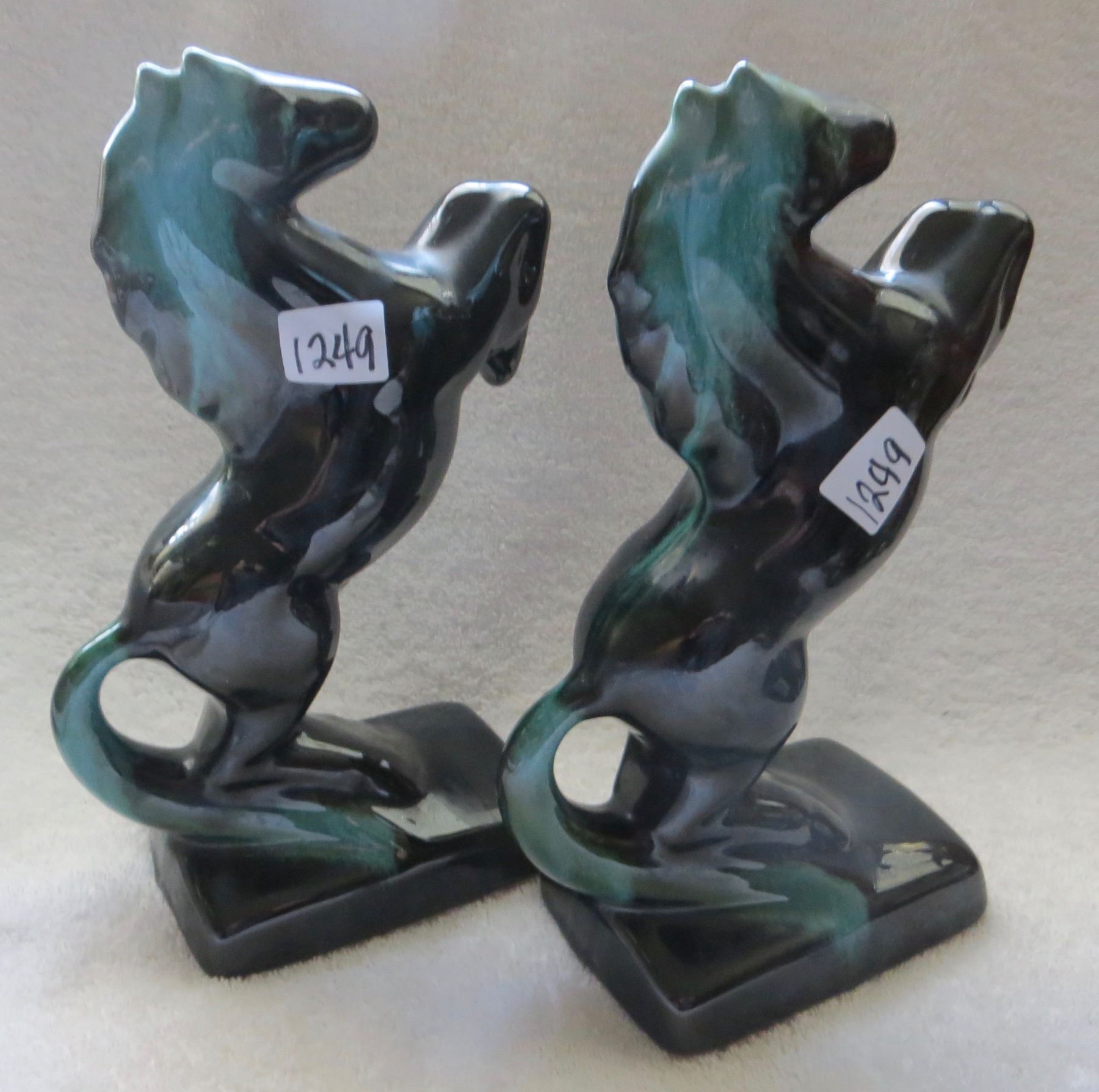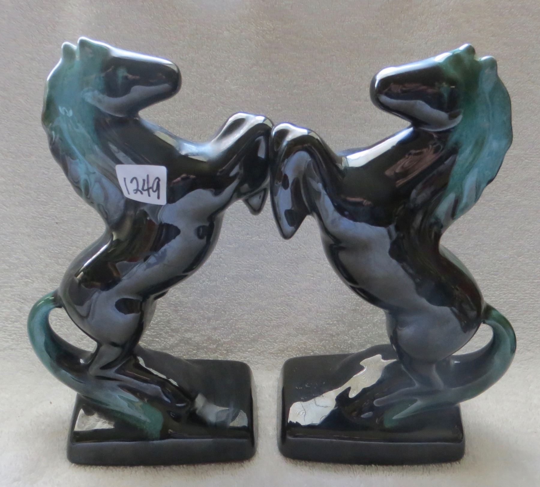 Blue Mountain procelain, rearing horses bookends - 9 1/2"