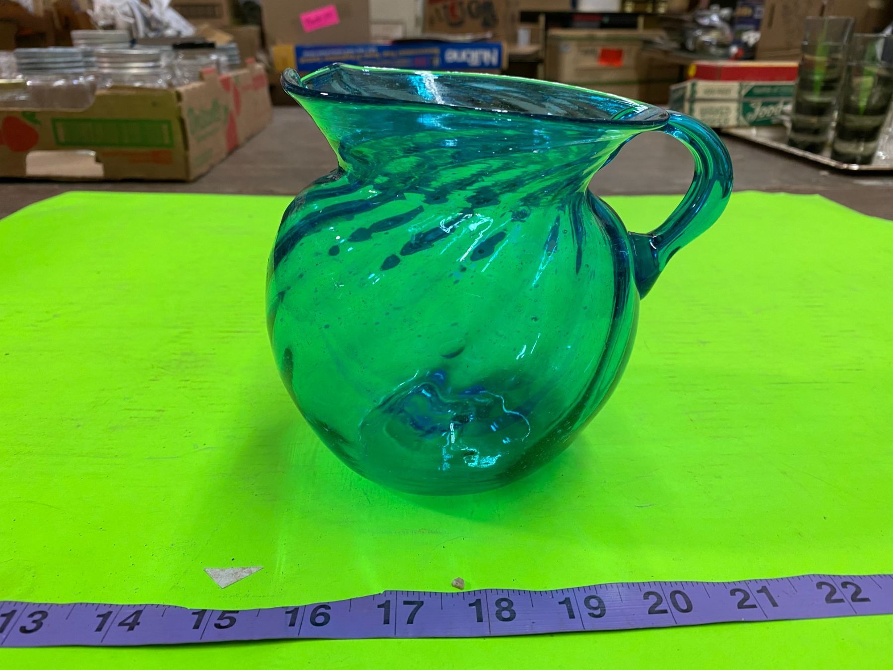 Blue Swirl Glass Pitcher