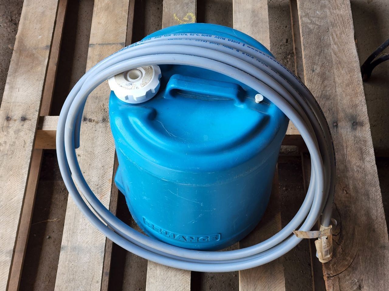 Blue Water Jug, with Plastic Hose/Tubing, Approx 6 Gallons
