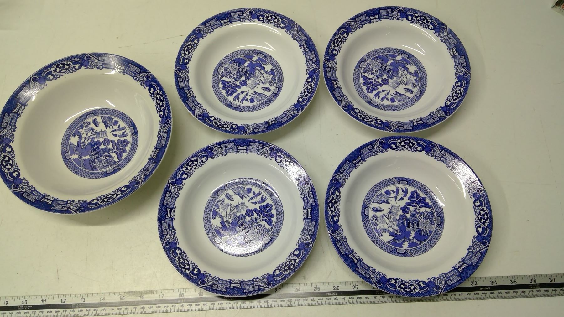 Blue Willow "Royal Oak" China, 1 serving bowl, 4 soup bowls