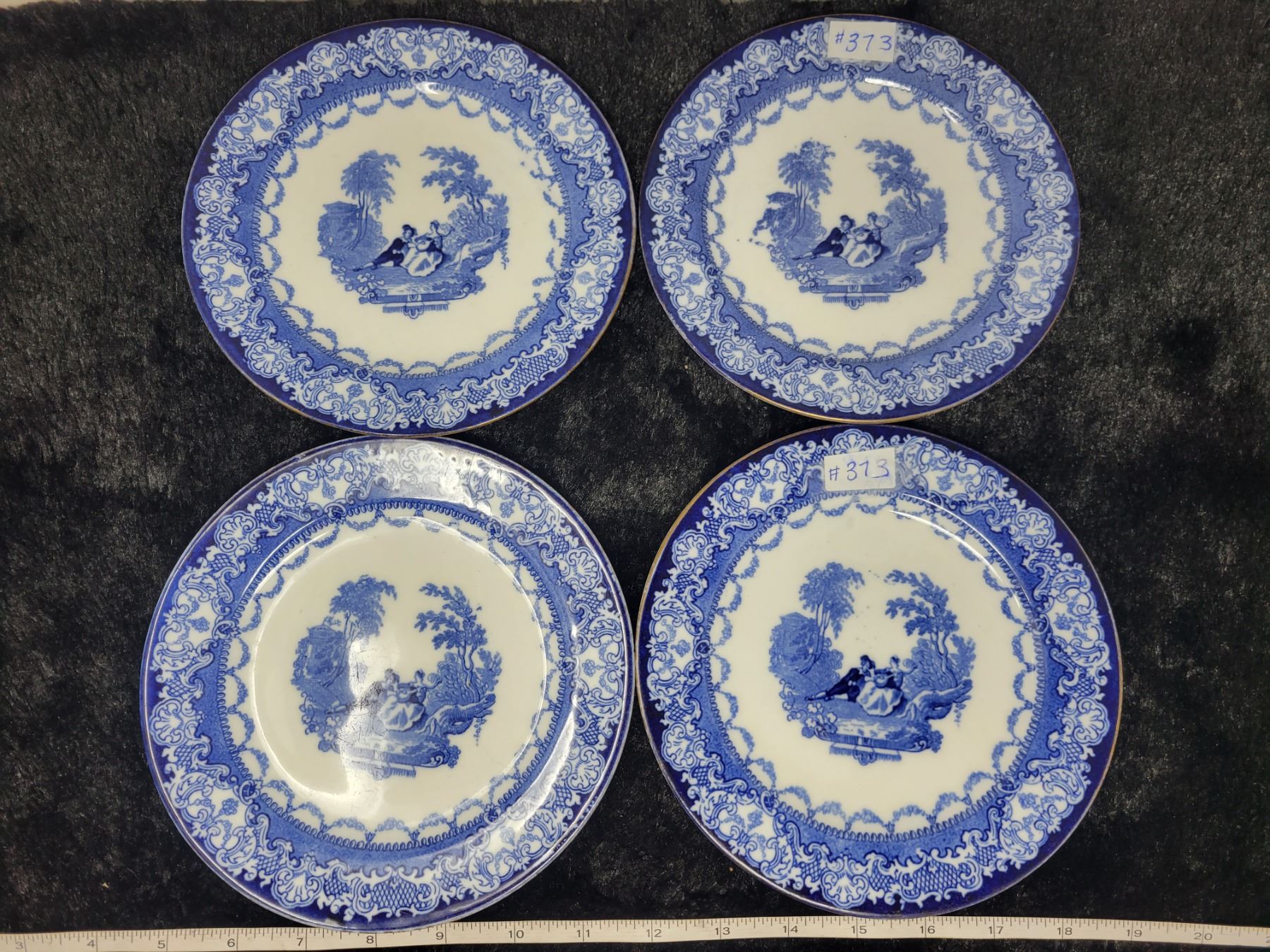 Blue and white porcelain dessert plates, 7”, Doulton, England (4)