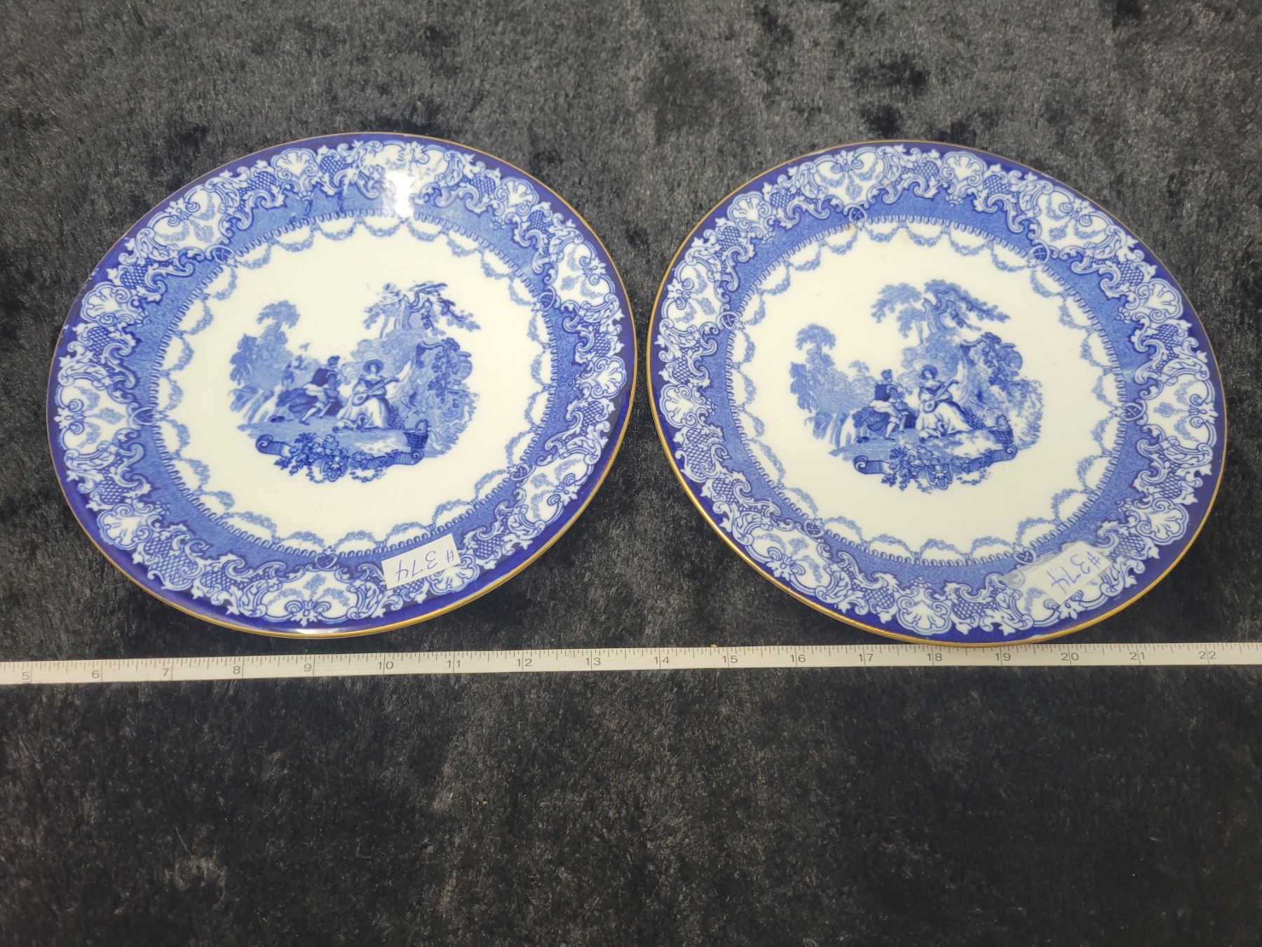 Blue and white porcelain lunch plates, 9”, Doulton, England (2)