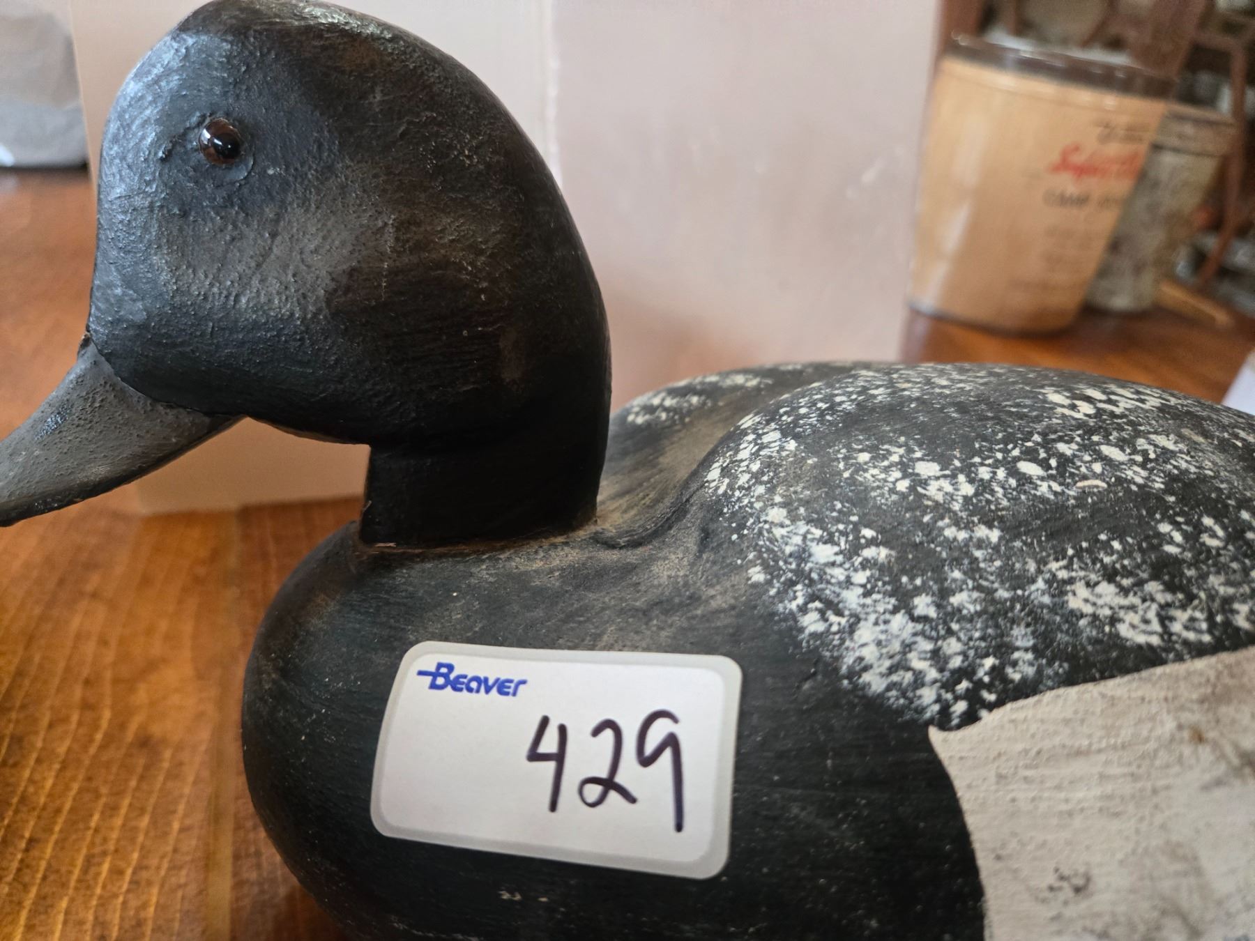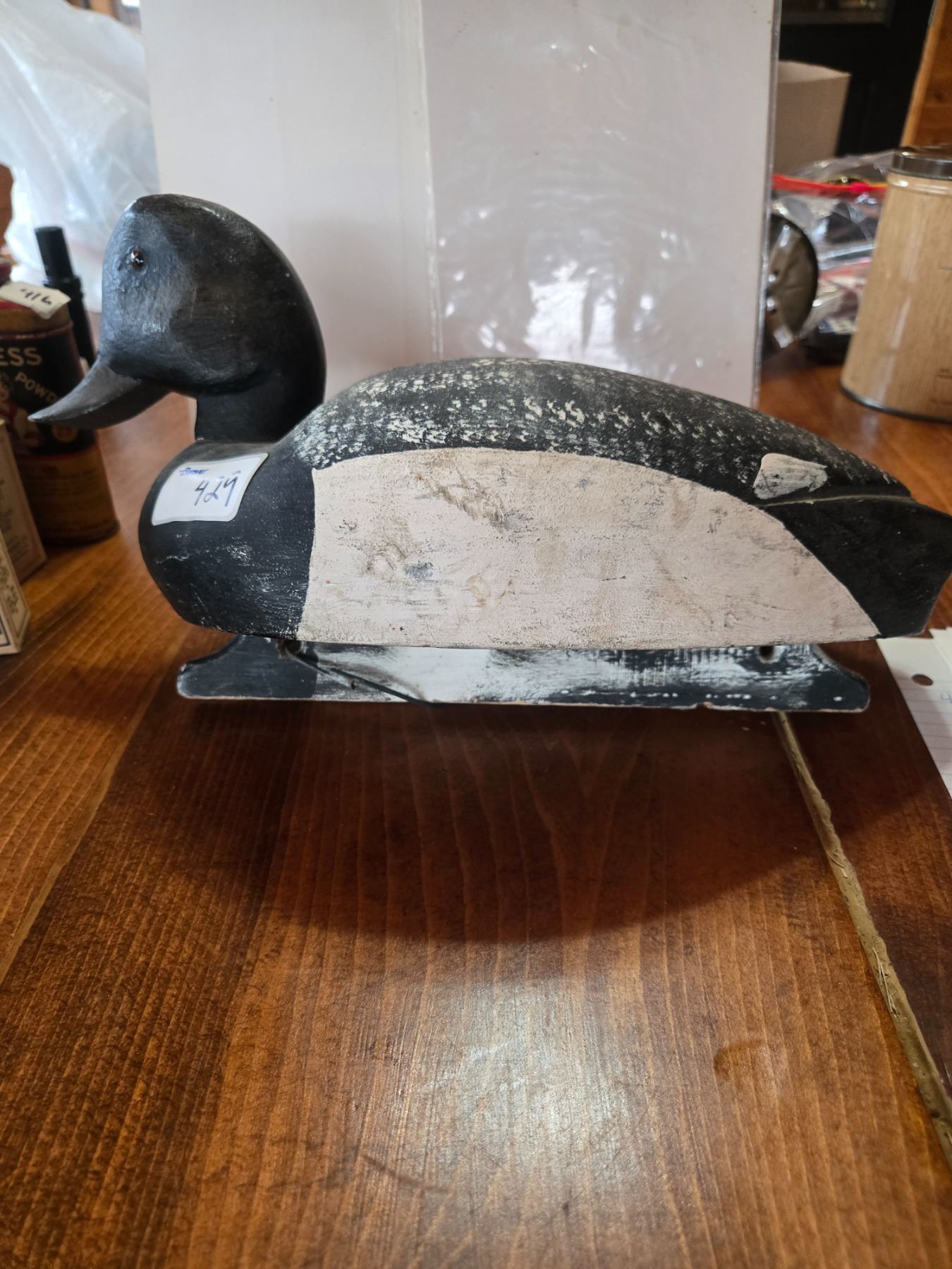 Blue bill drake duck decoy wooden with glass eyes hand painted