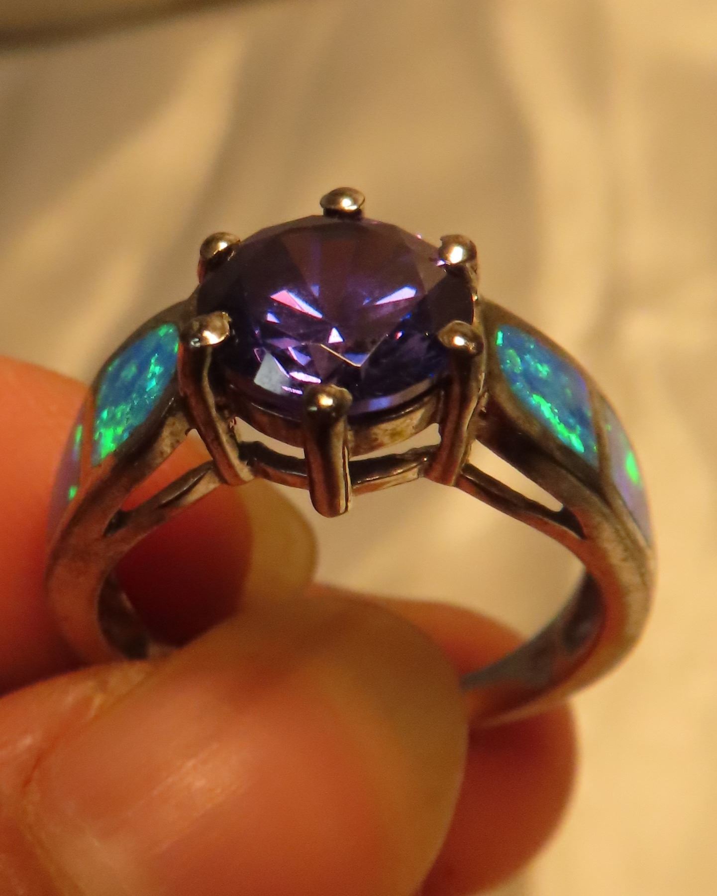 Blue fire opal 925 silver - size 8