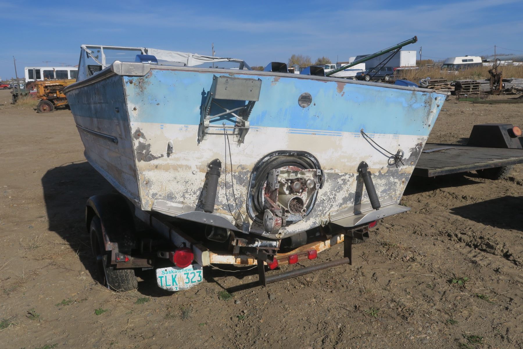 Blue& white 16ft boat with trailer ( SN not located ) Plate # TLK 323