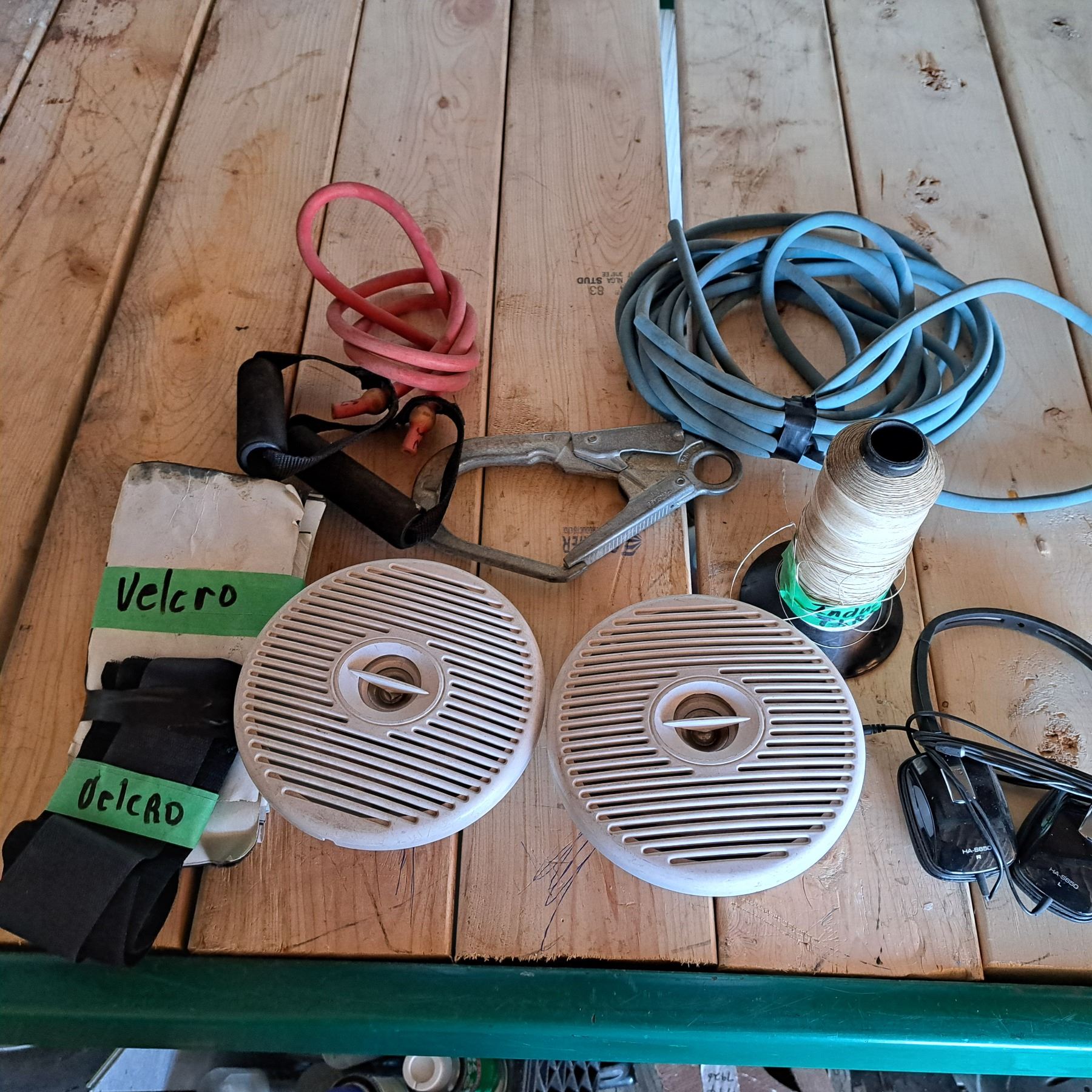 Boat speakers, head set, velcro, and metal clip