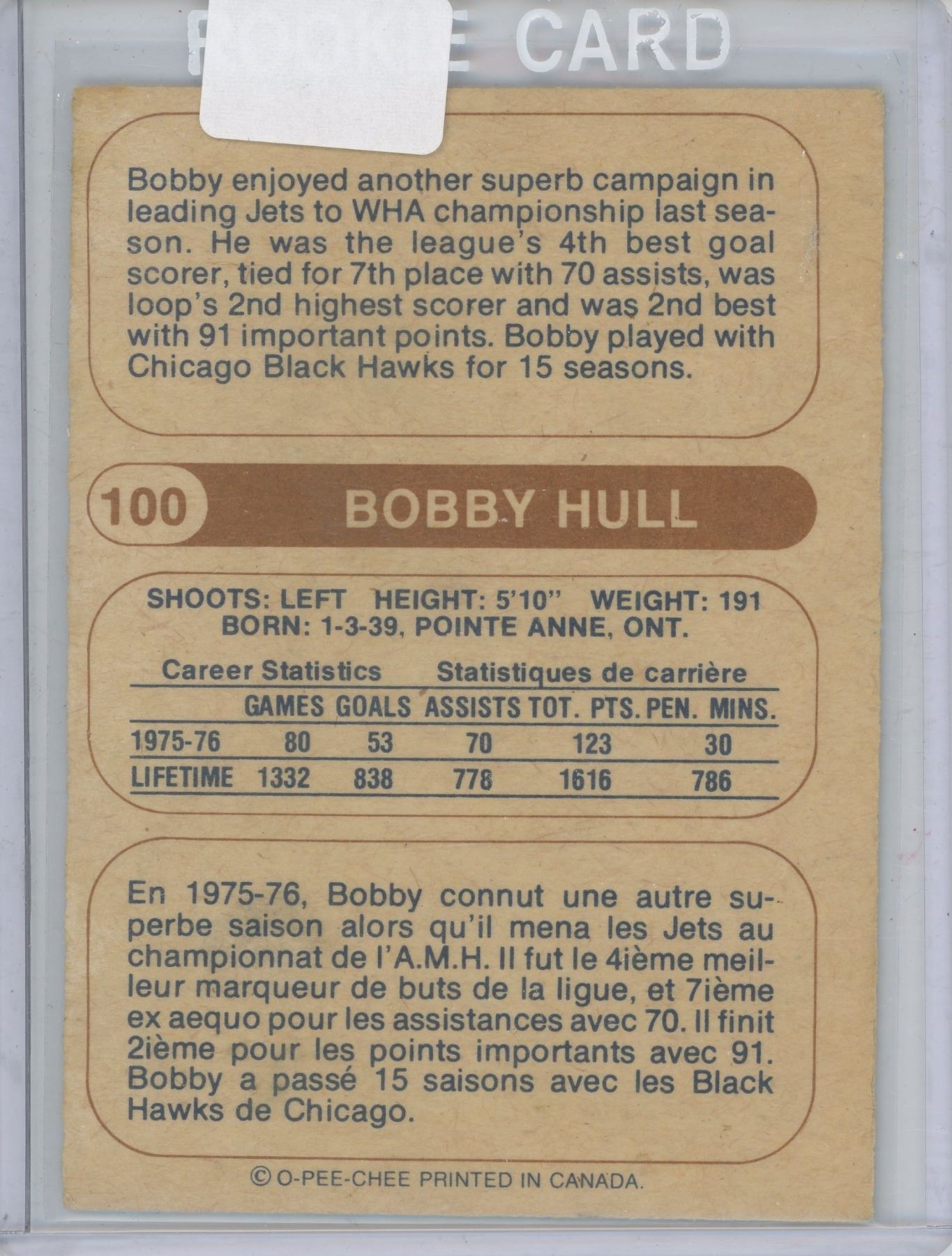 Bobbie Hull WHL Opeechee #100
