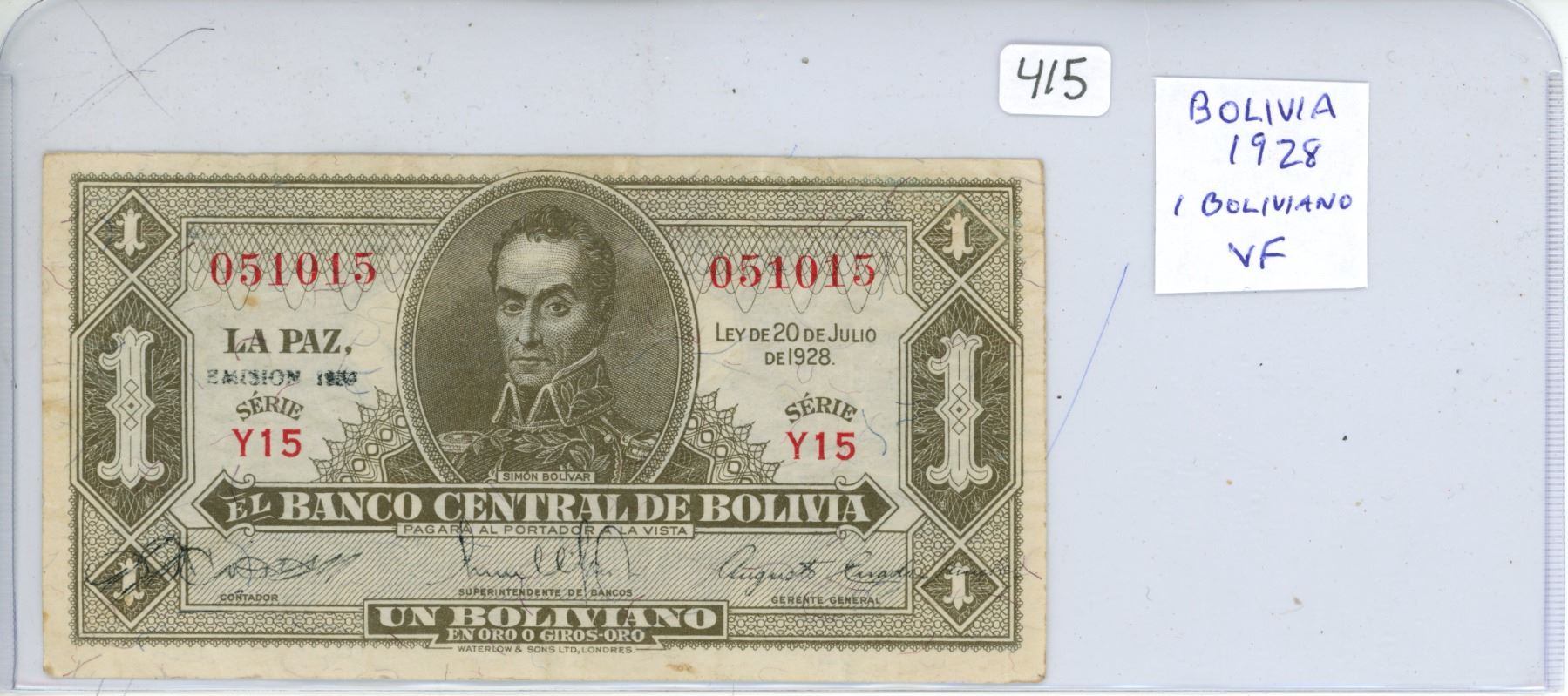 Bolivia. 1928 1 Boliviano. VF.