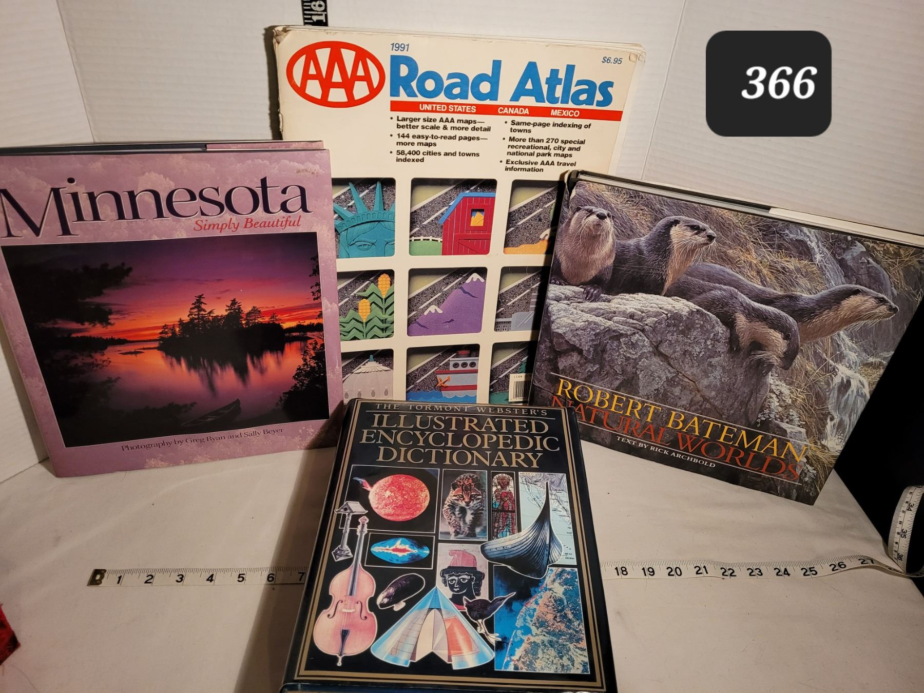 Book lot 1991 AAA Road Atlas,Illustrated Encyclopedic Dictionary, Minnesota & Natural World