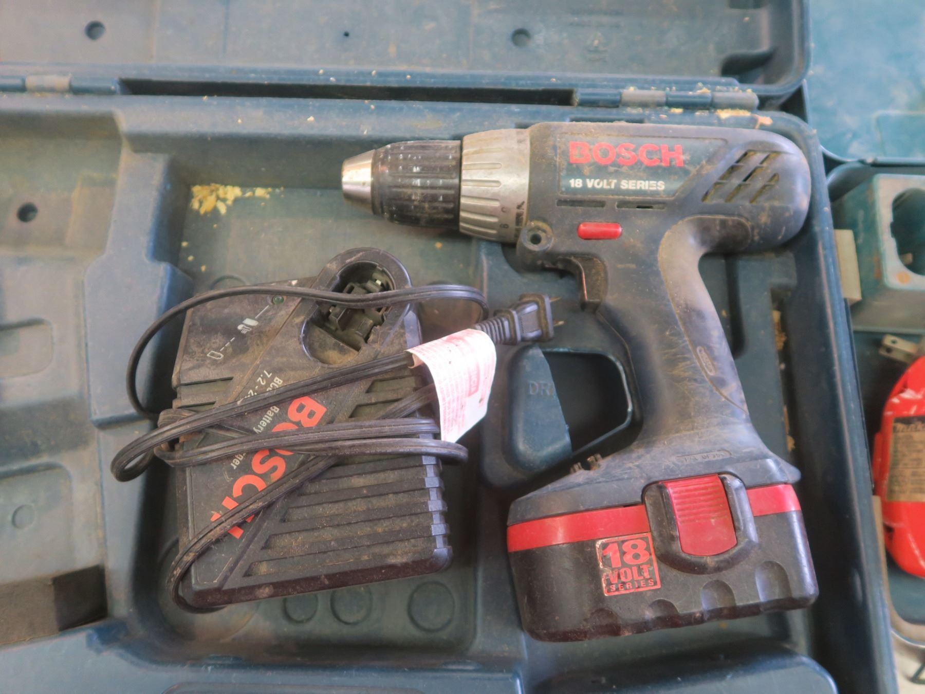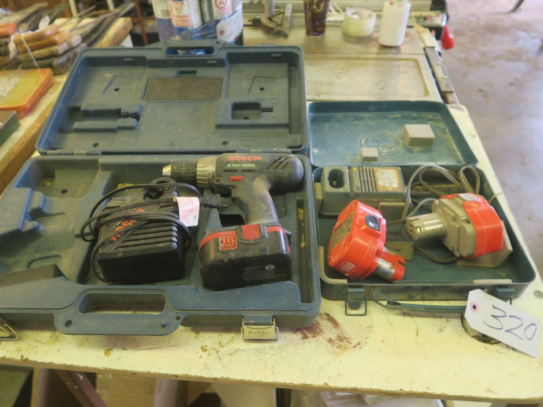 Bosch Cordless drill with batteries/charger/case + Makita 18V batteries with charger + case