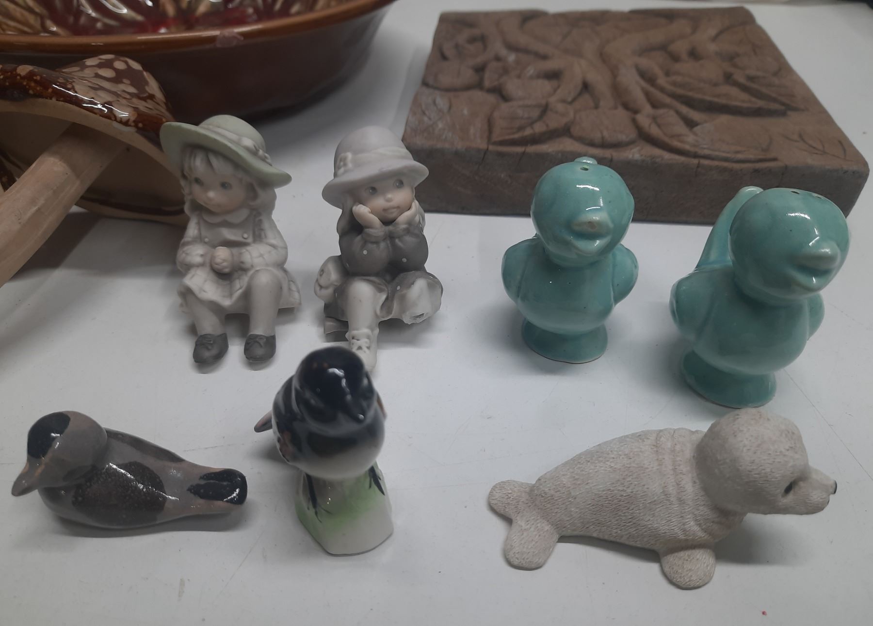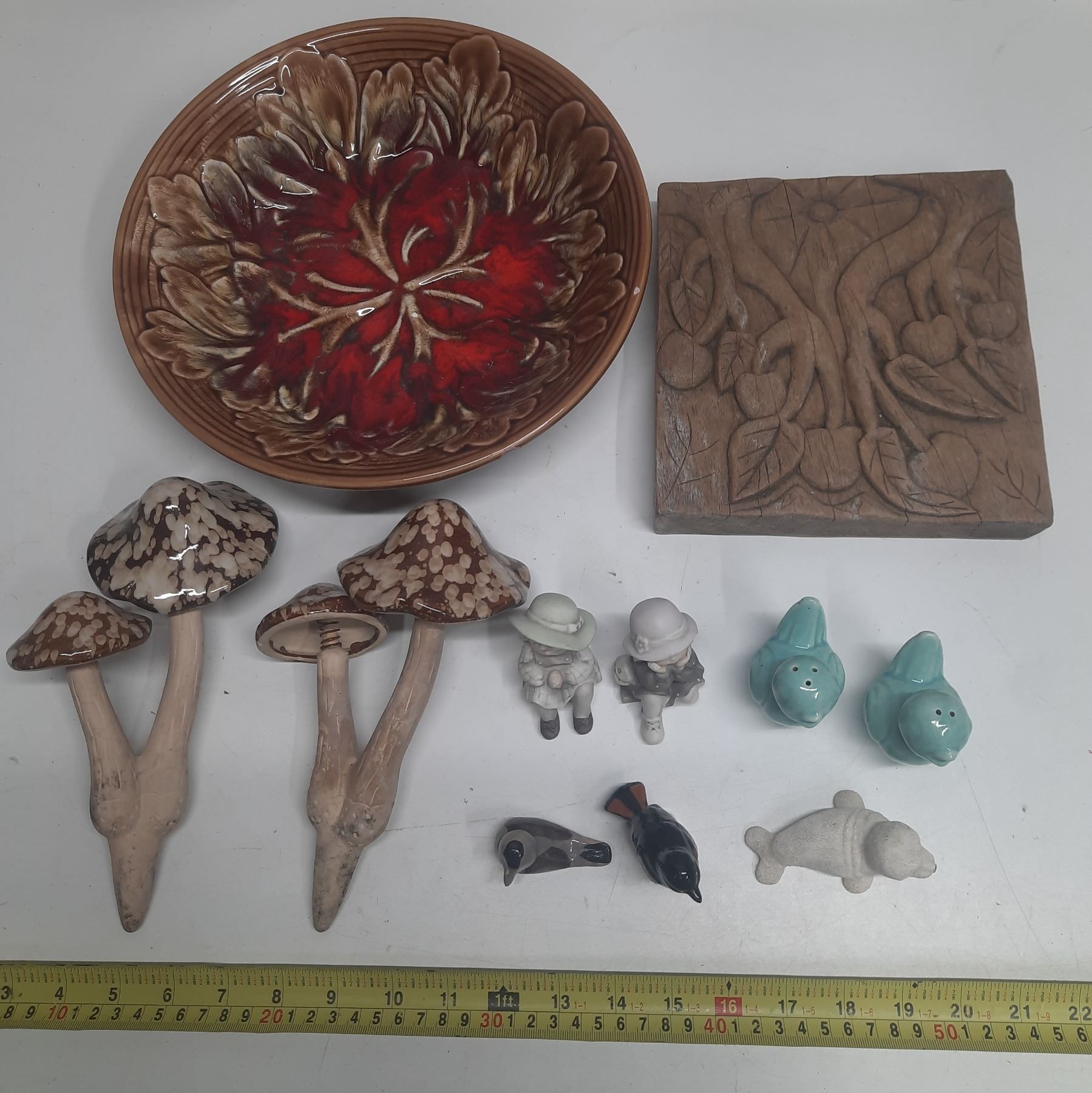 Bowl, (2) Garden Mashrooms, Salt and Pepper Shaker Small Minatures and Handmade Design on Wood, etc.